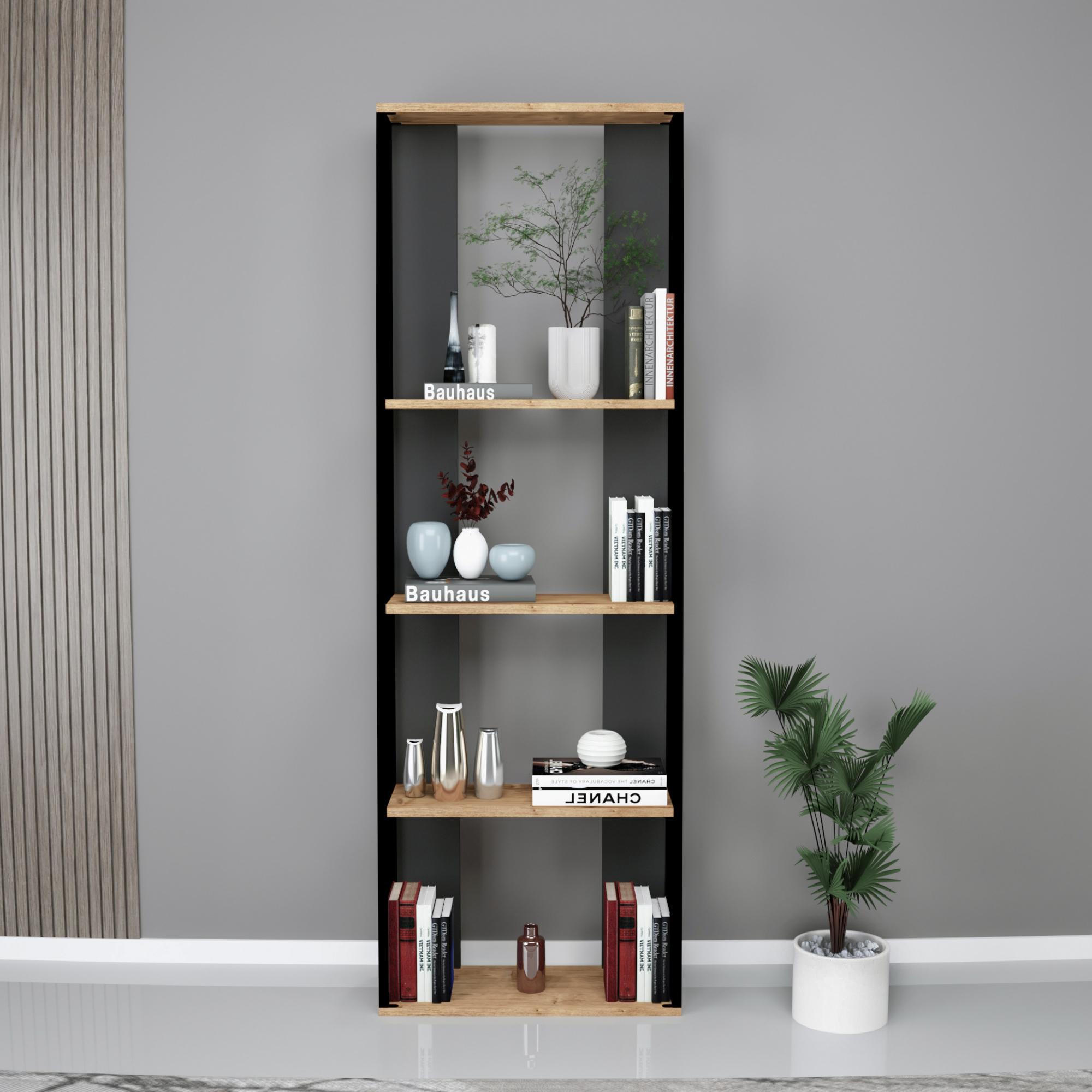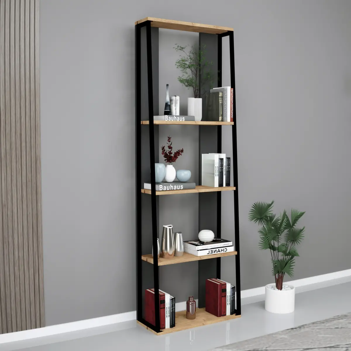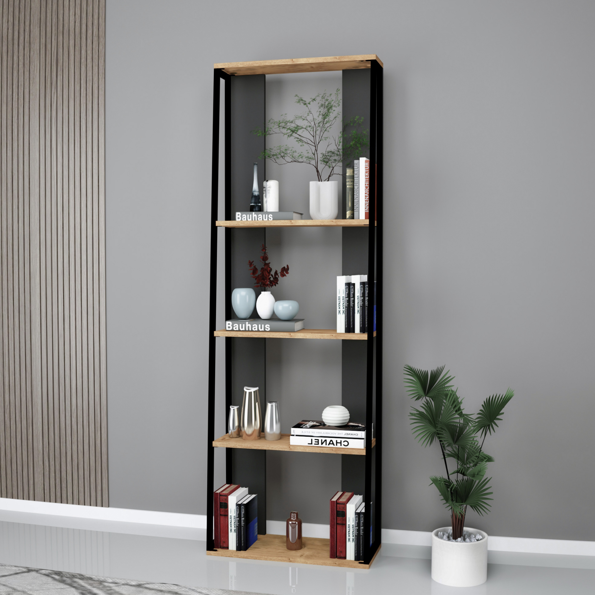 Alis Bookcase with Metal Frame - Sapphire Oak & Anthracite