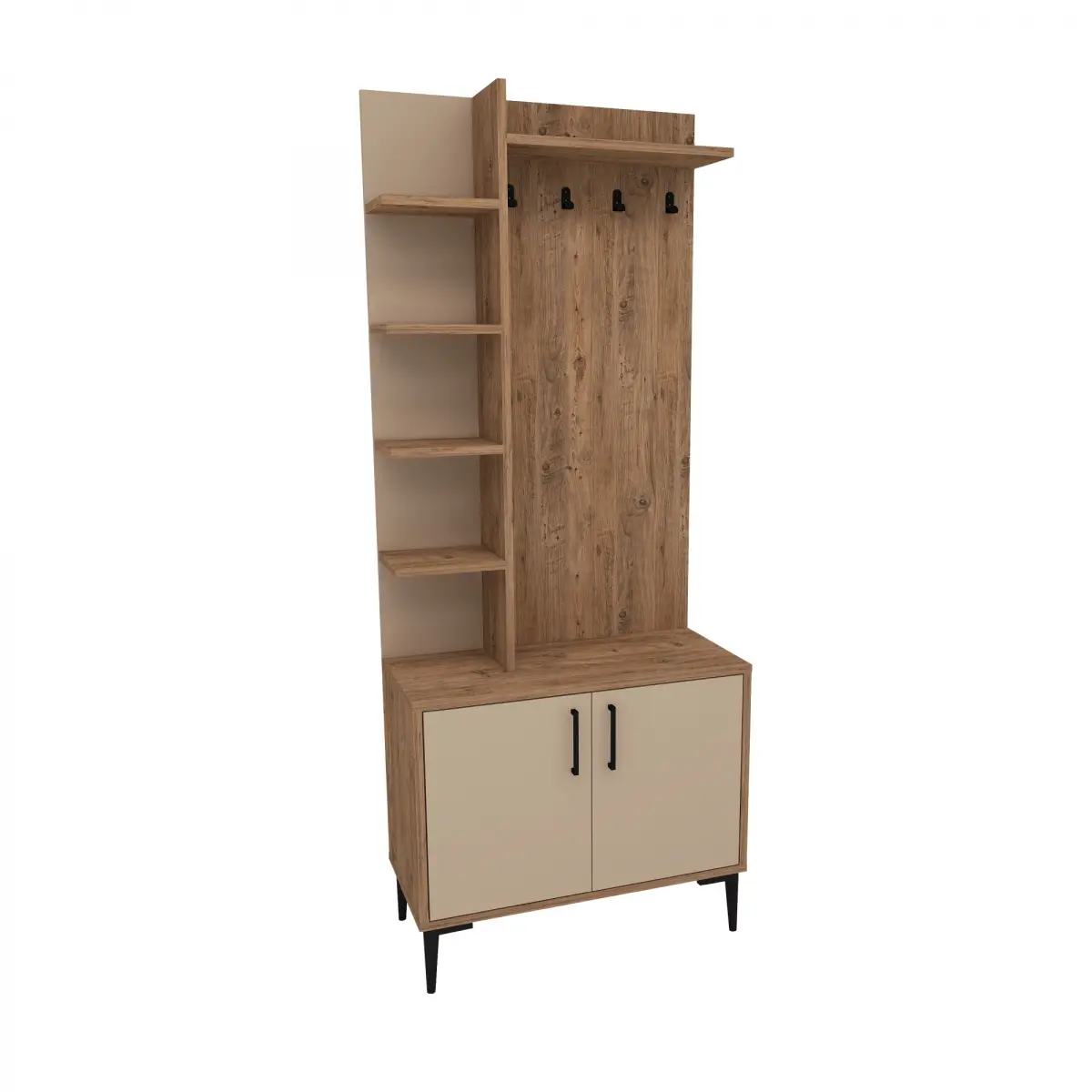 Lefteris Hallway Coat Rack with Shelves - Atlantic Pine & Beige
