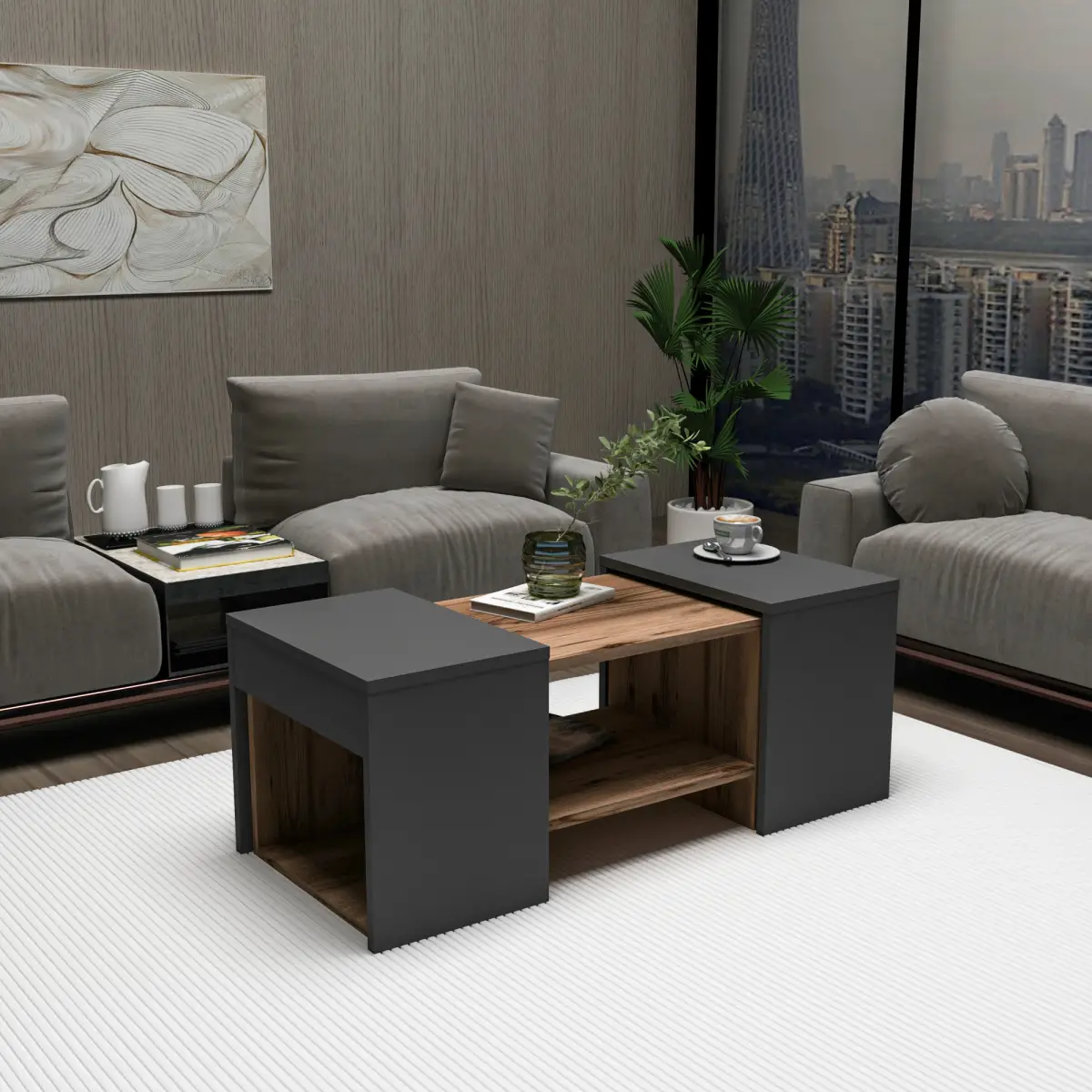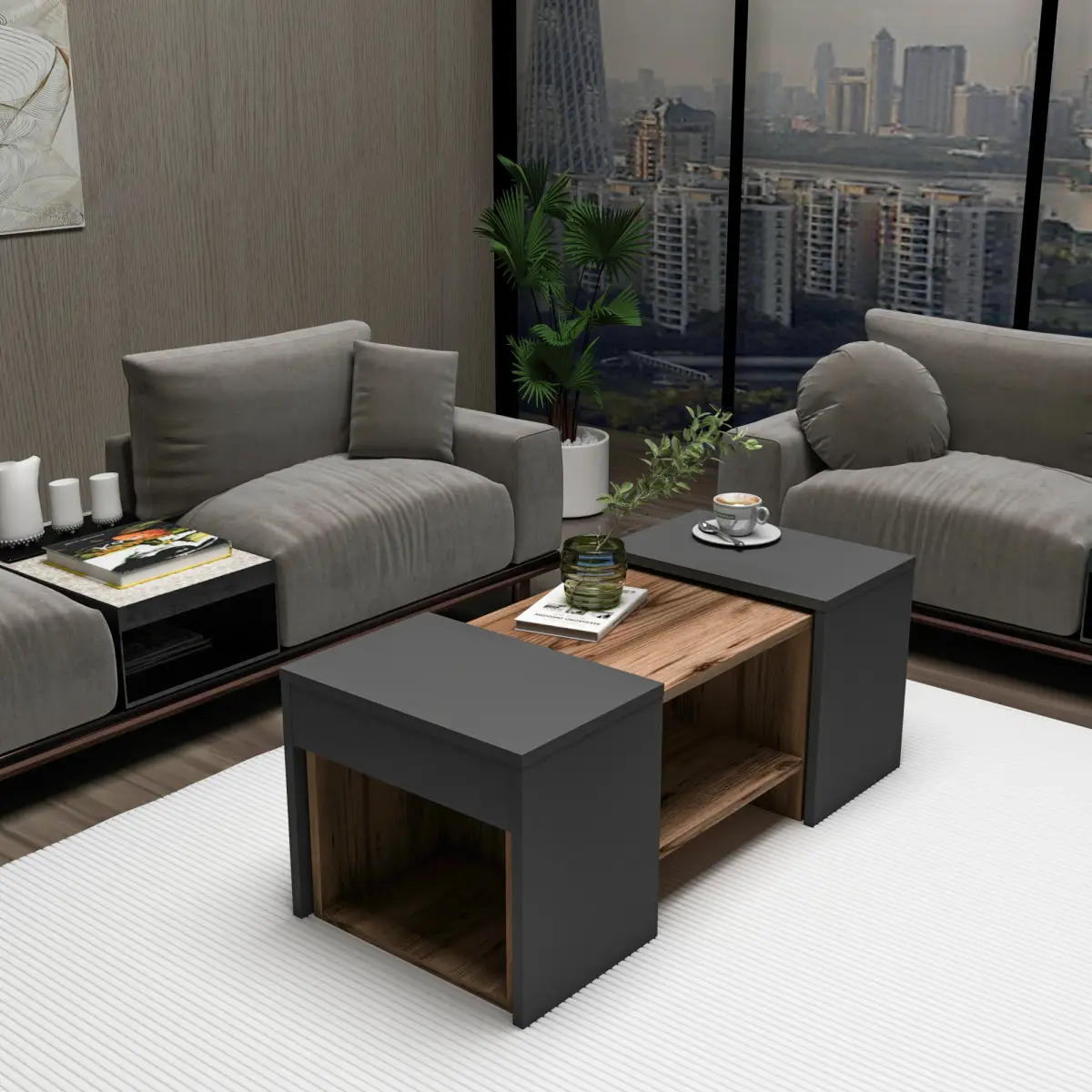 Irene Coffee Table - Light Walnut & Anthracite