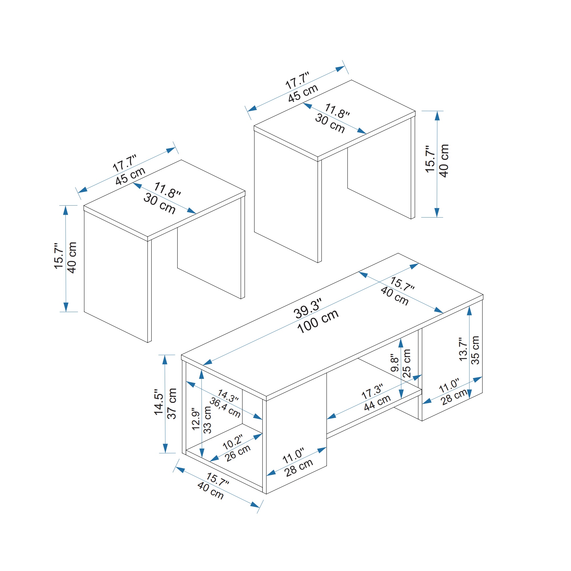 HEIGHT: 15,74" / 40 cm | WIDTH: 39,37" / 100 cm | DEPTH: 15,74" / 40 cm.