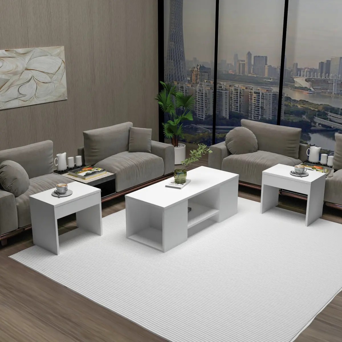 - Comes with two side tables