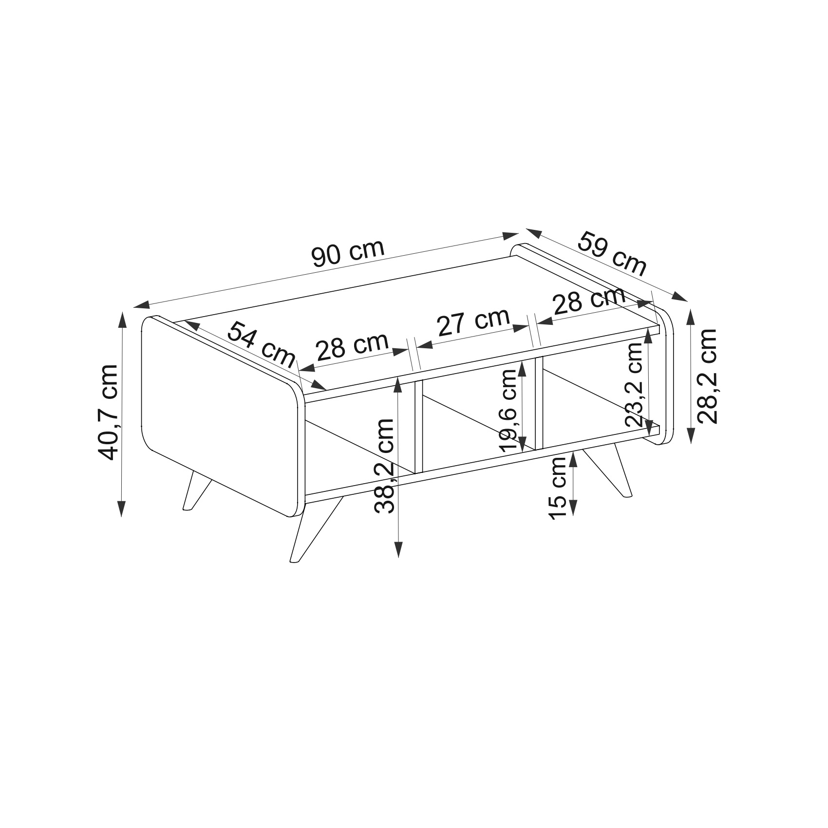 HEIGHT: 16" / 40.7 cm | WIDTH: 35.4" / 90 cm | DEPTH: 23,22" / 59 cm.