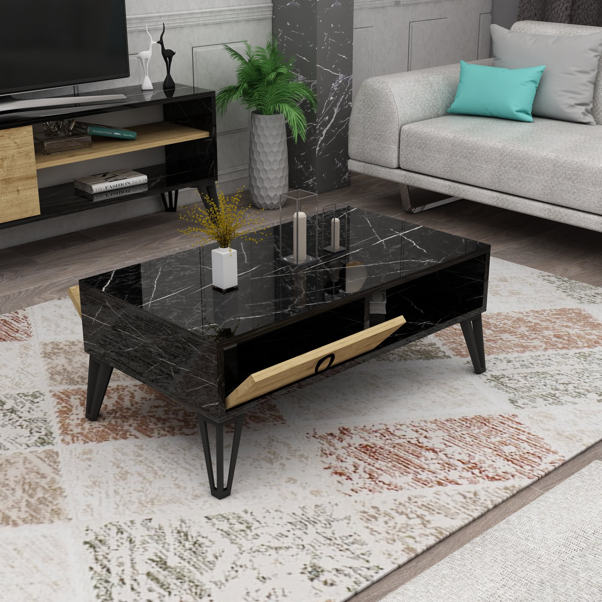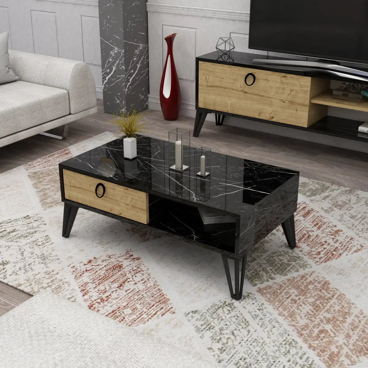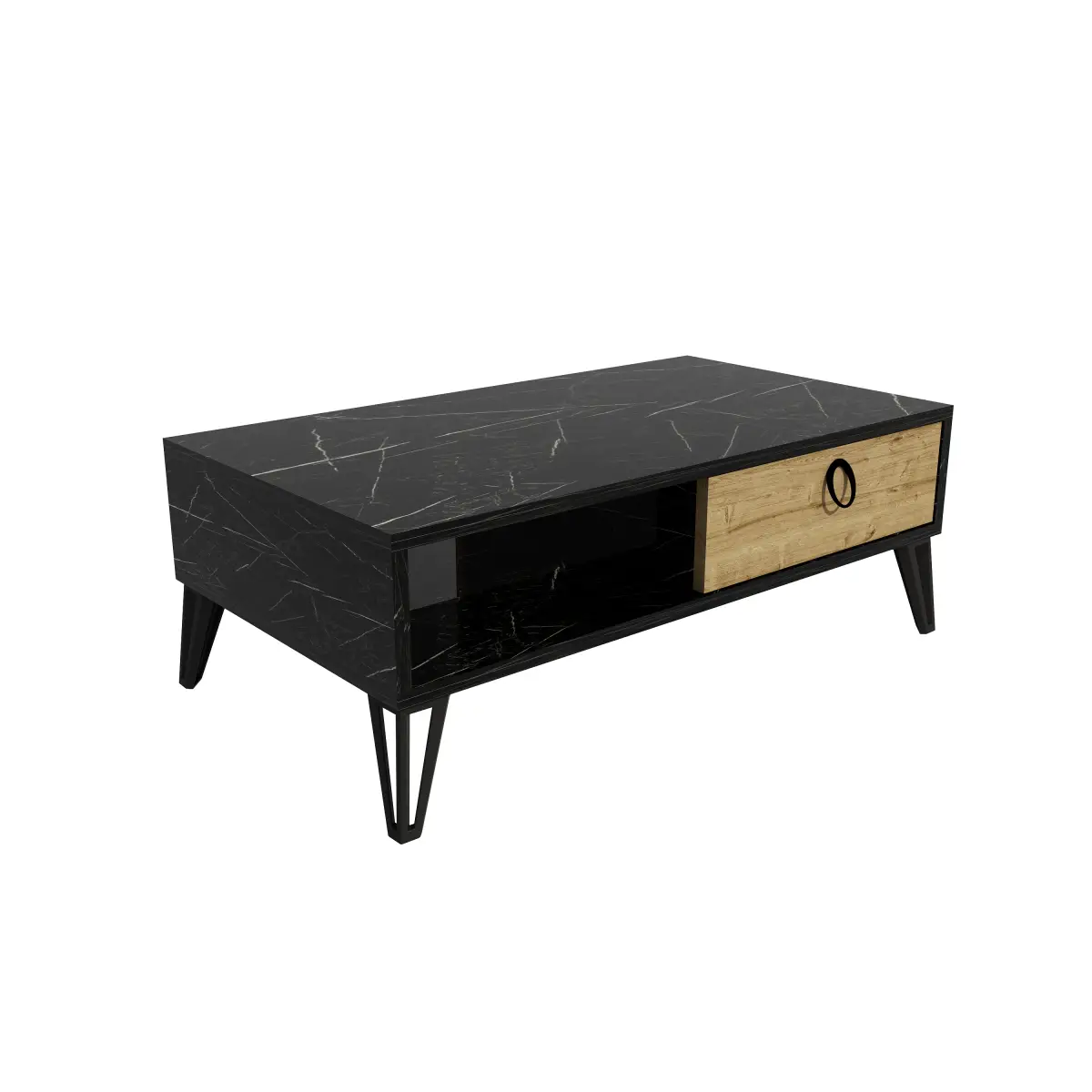 Oslo Coffee Table - Sapphire Oak & Black Marble Pattern