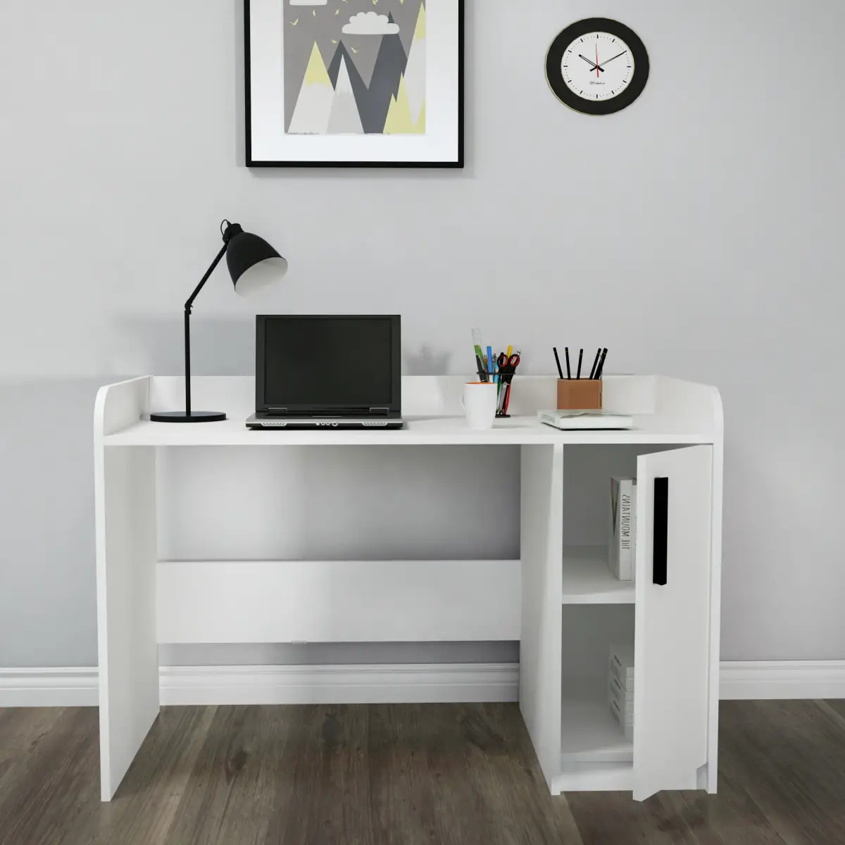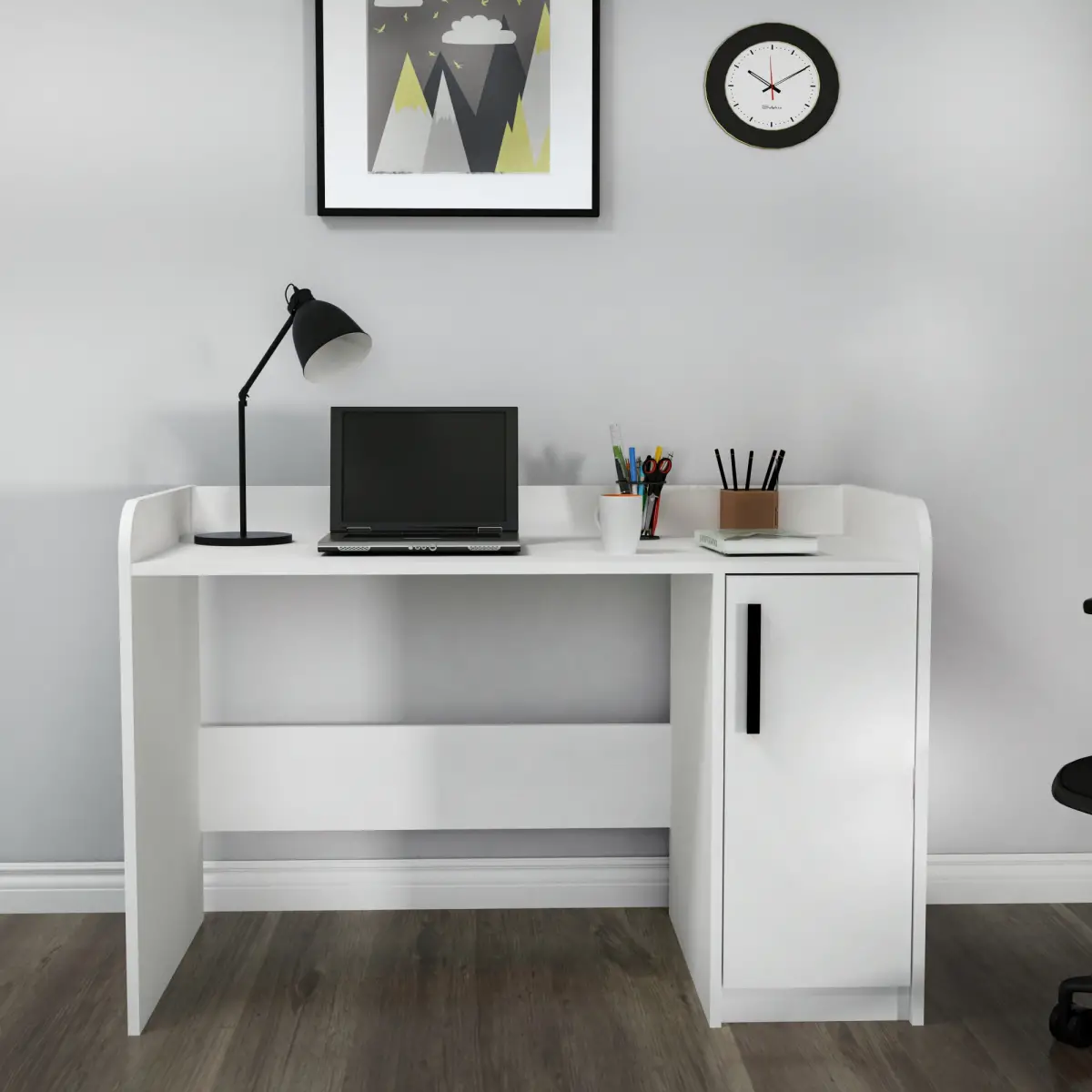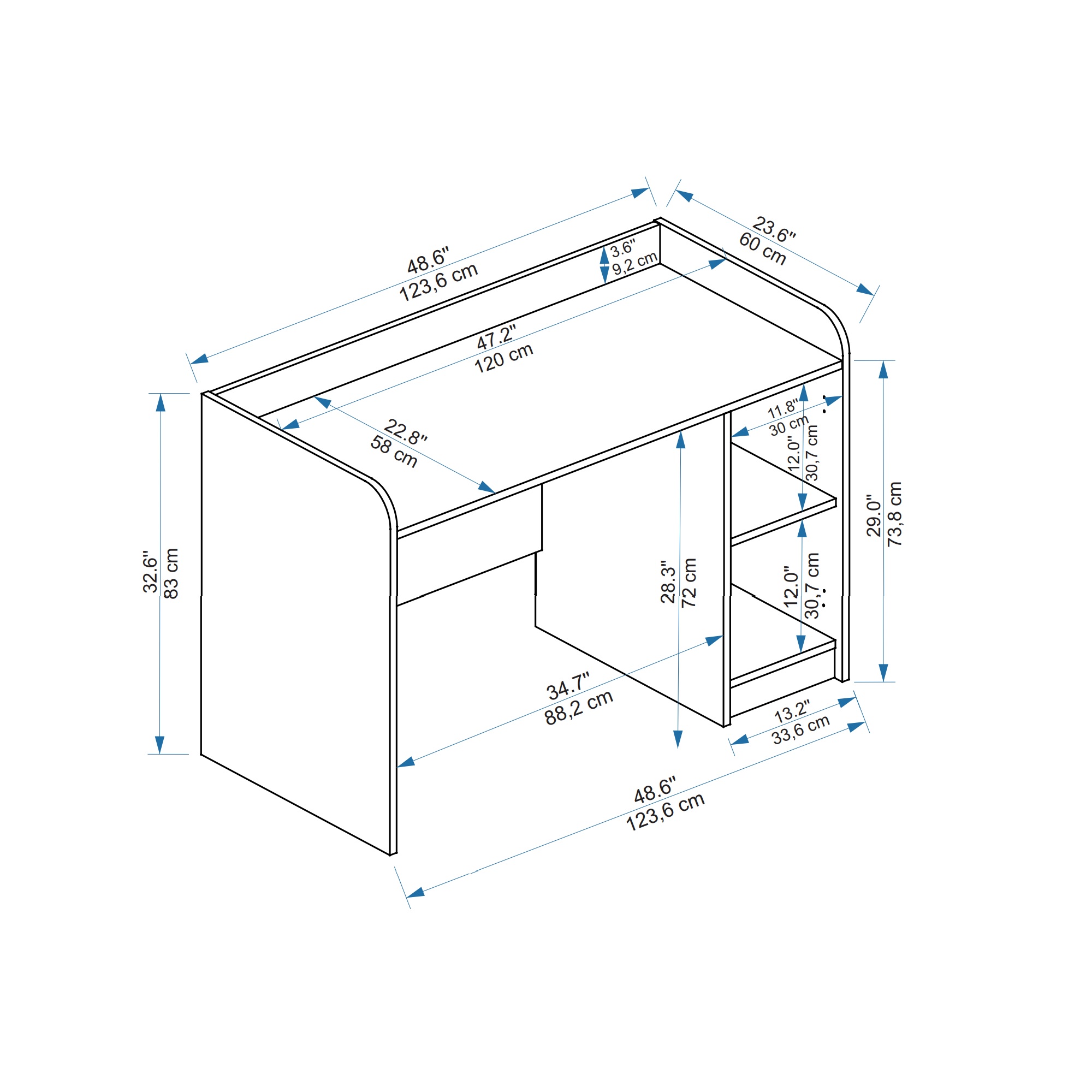 MATERIAL: The desk is made of an 18 mm thick quality melamine-coated particleboard. Handles are plastic. The manufactured wood surface is water-resistant to some extent and the edges are banded with PVC edge banding tape. First-class assembly/installation hardware and accessories are used. Our products are produced from certified quality raw materials that do not contain carcinogenic substances and comply with European Union health norms.