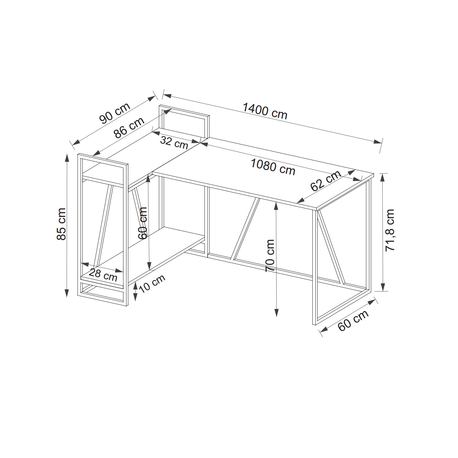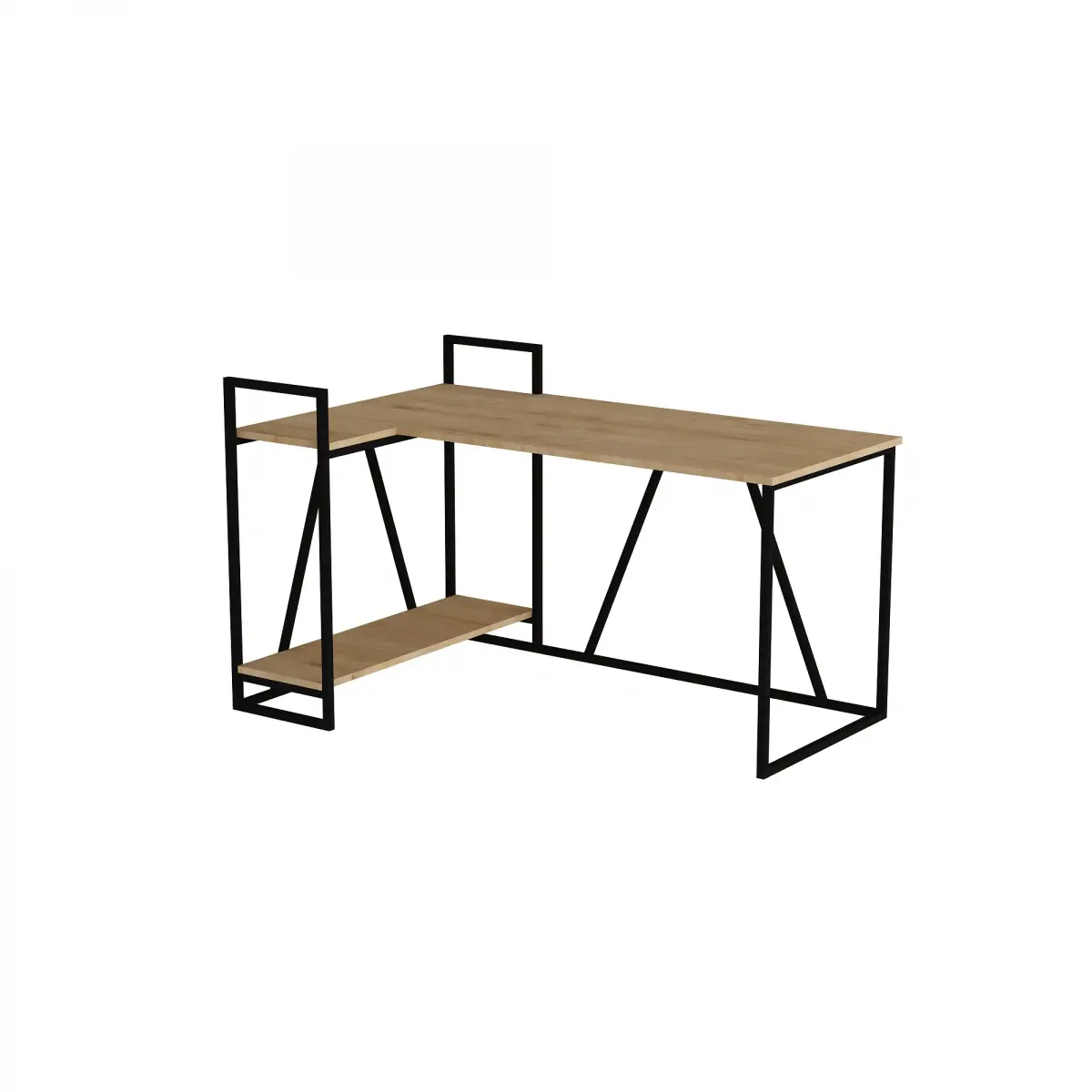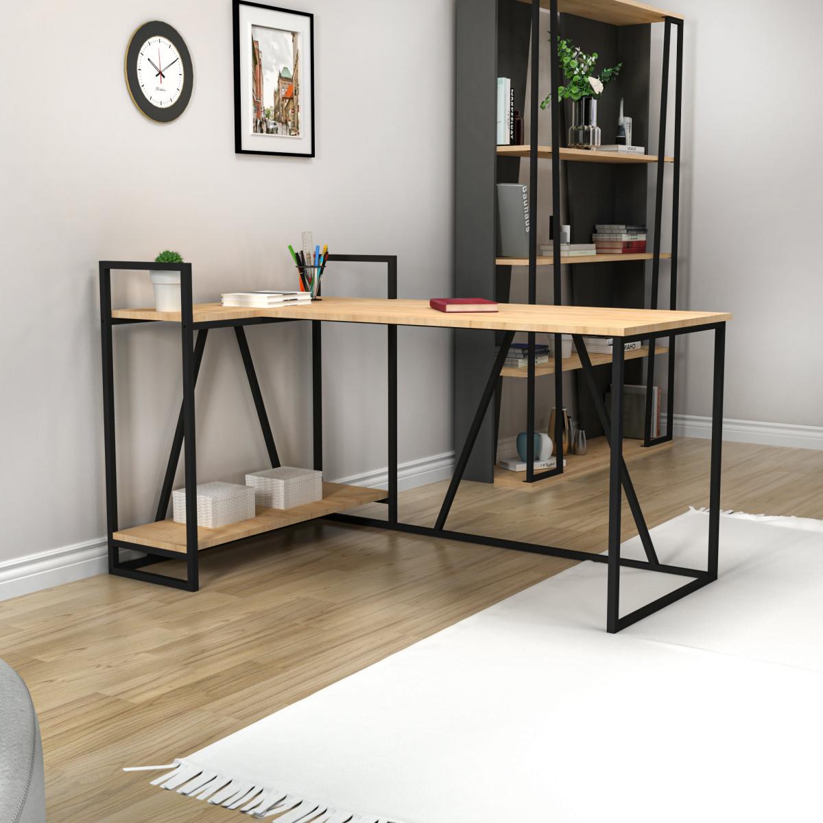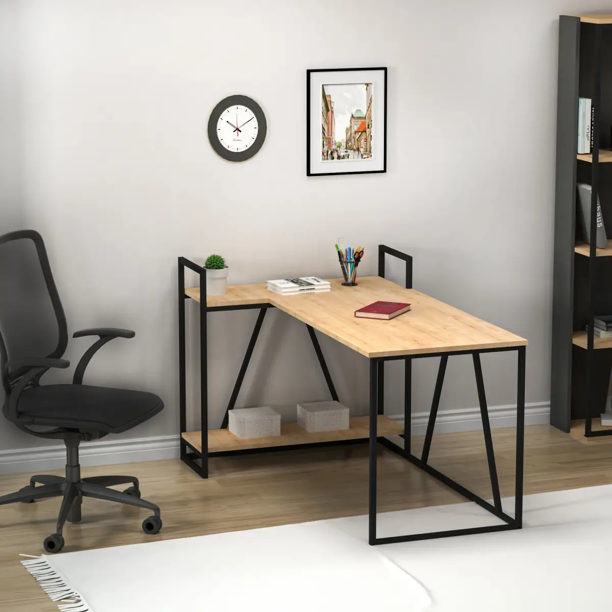 Lissa Corner Iron Leg Desk - Sapphire Oak & Black