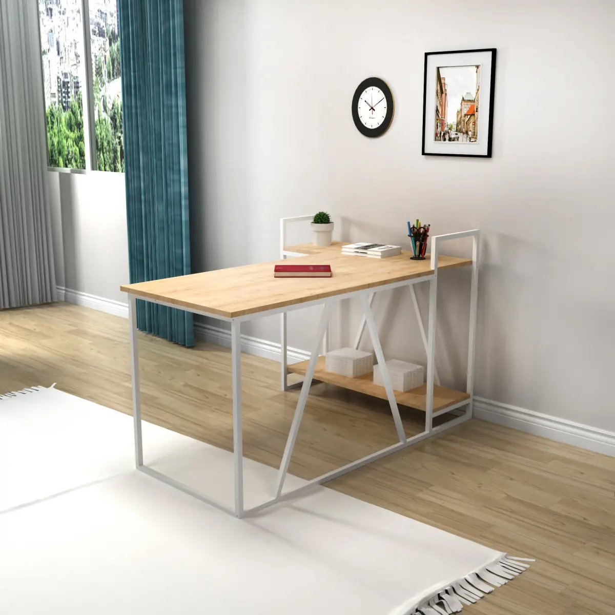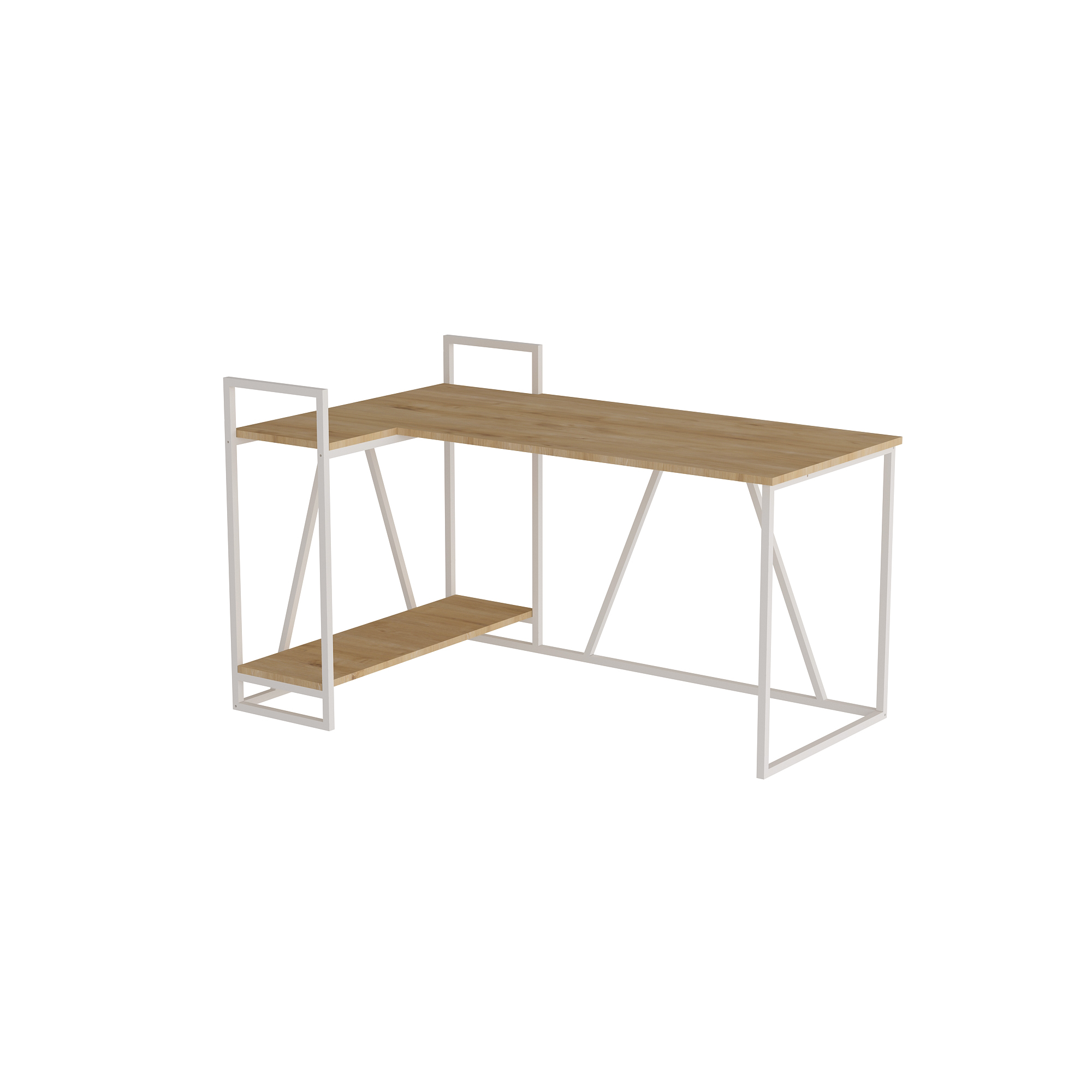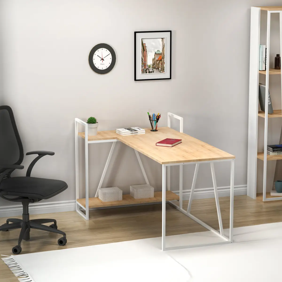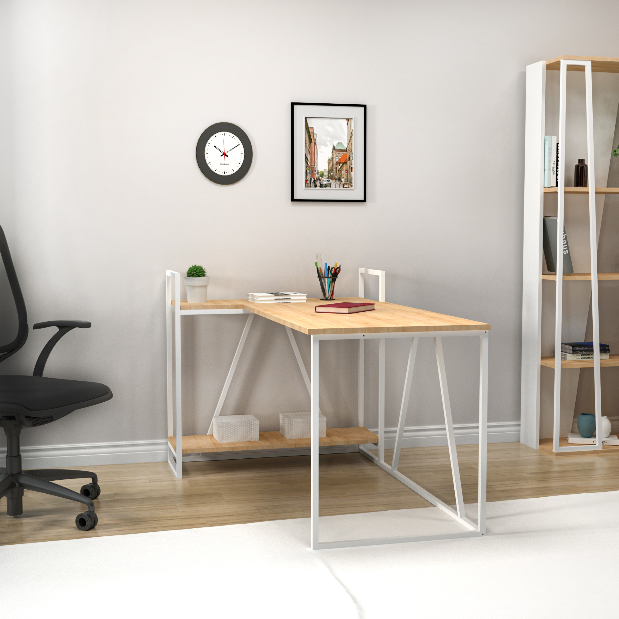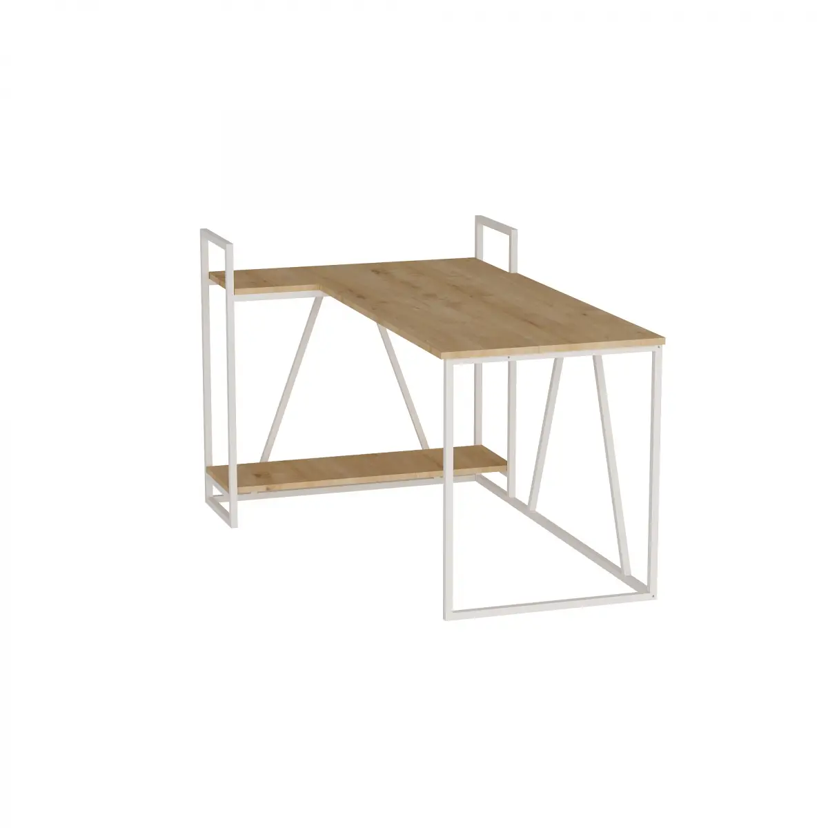 Lissa Corner Iron Leg Desk - Sapphire Oak & White