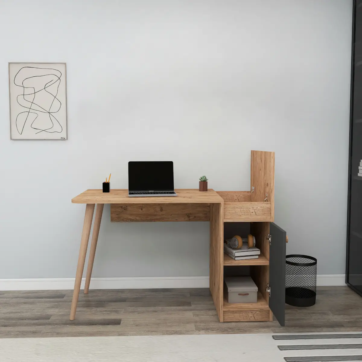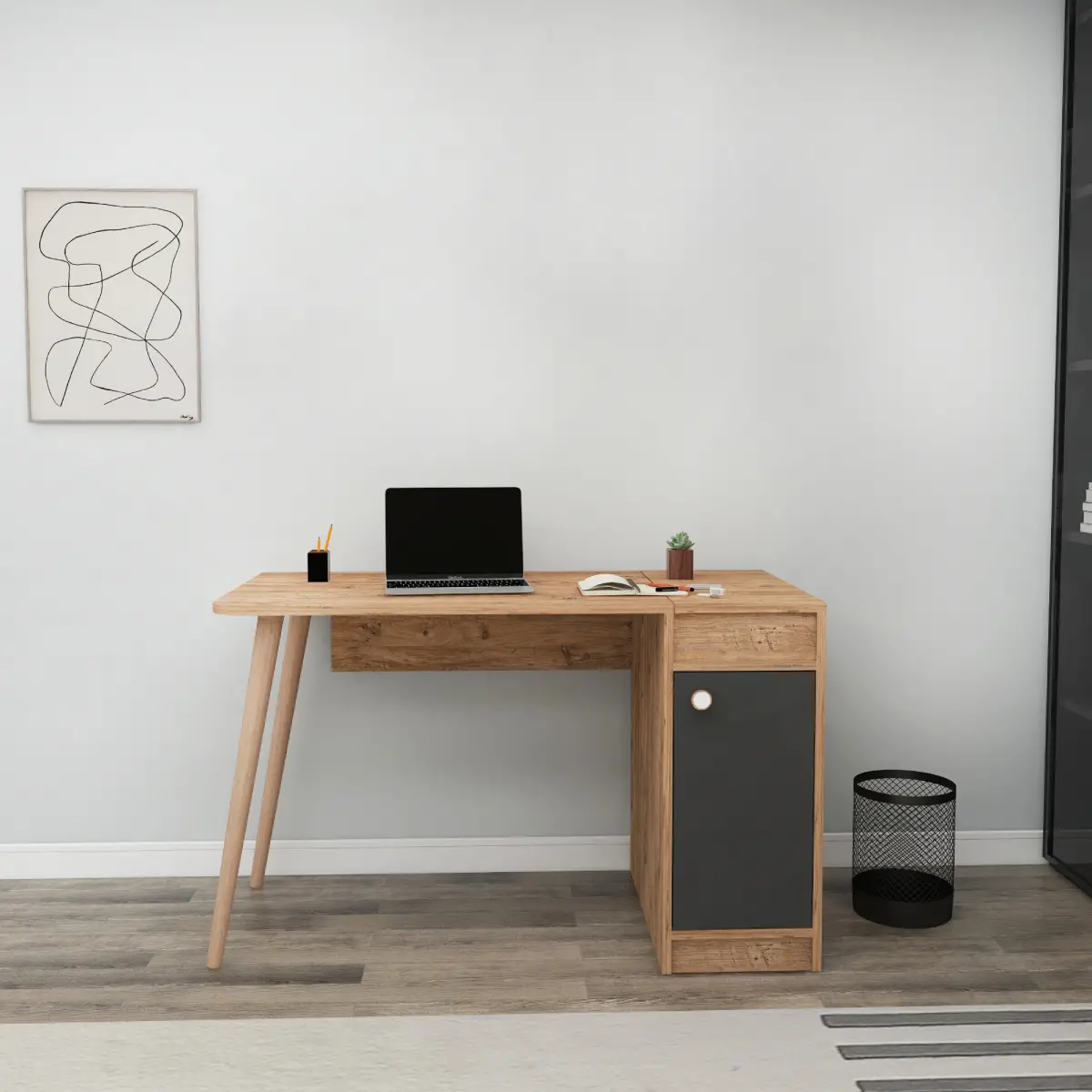 Noya Wooden Leg Desk - Atlantic Pine & Anthracite