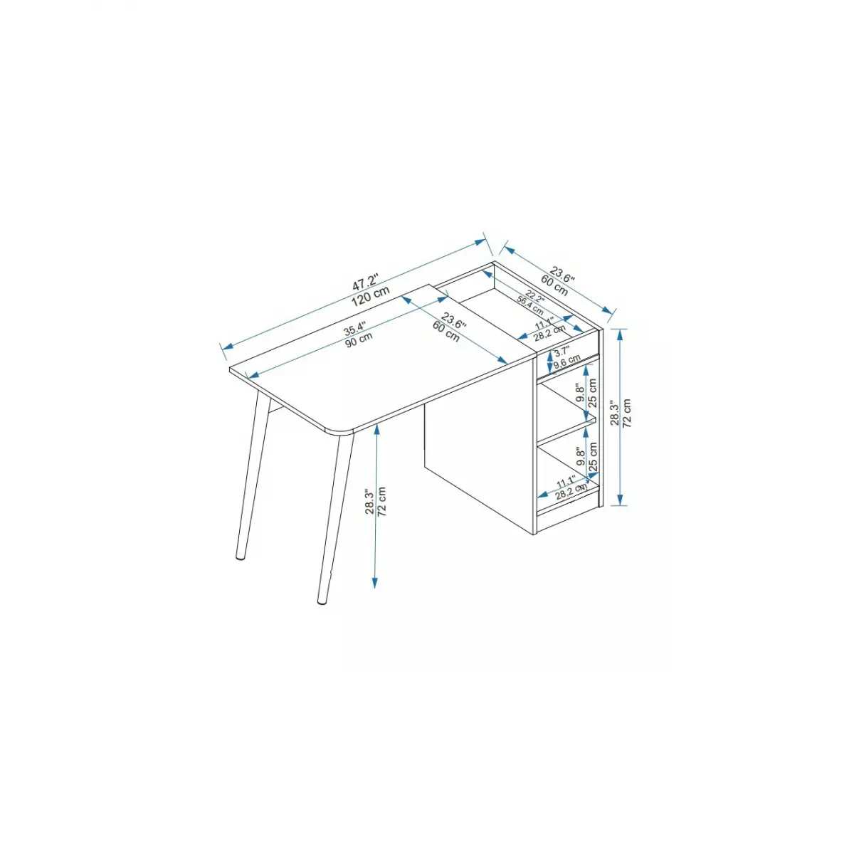 HEIGHT: 28,34" / 72 cm | WIDTH: 47,24" / 120 cm | DEPTH: 23.6" / 60 cm.