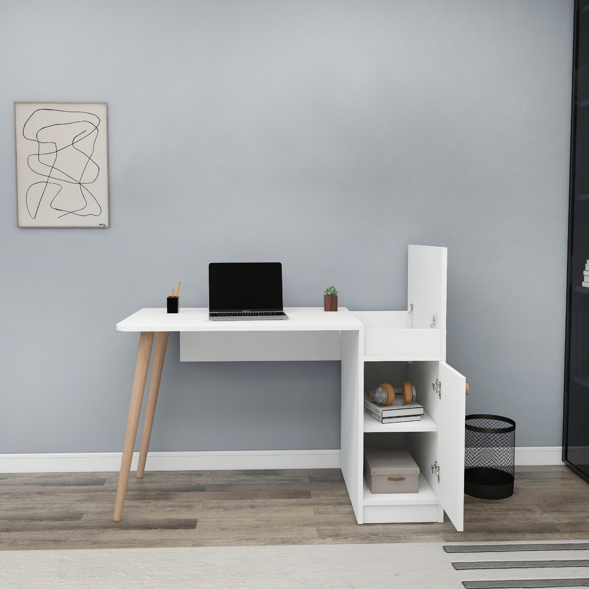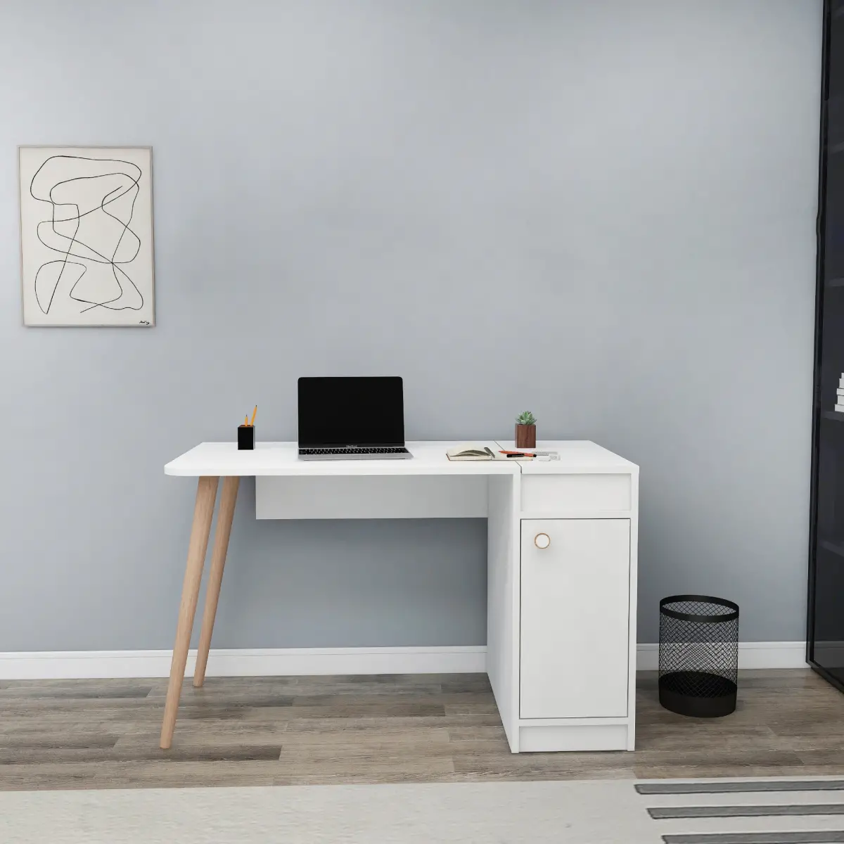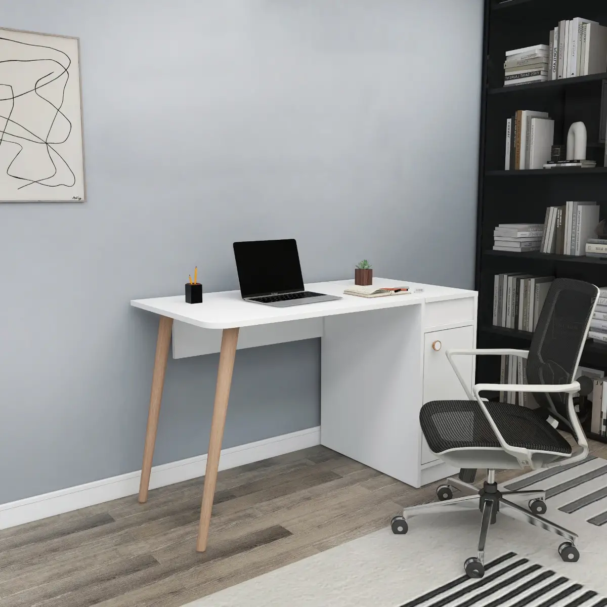 Noya Wooden Leg Desk - White