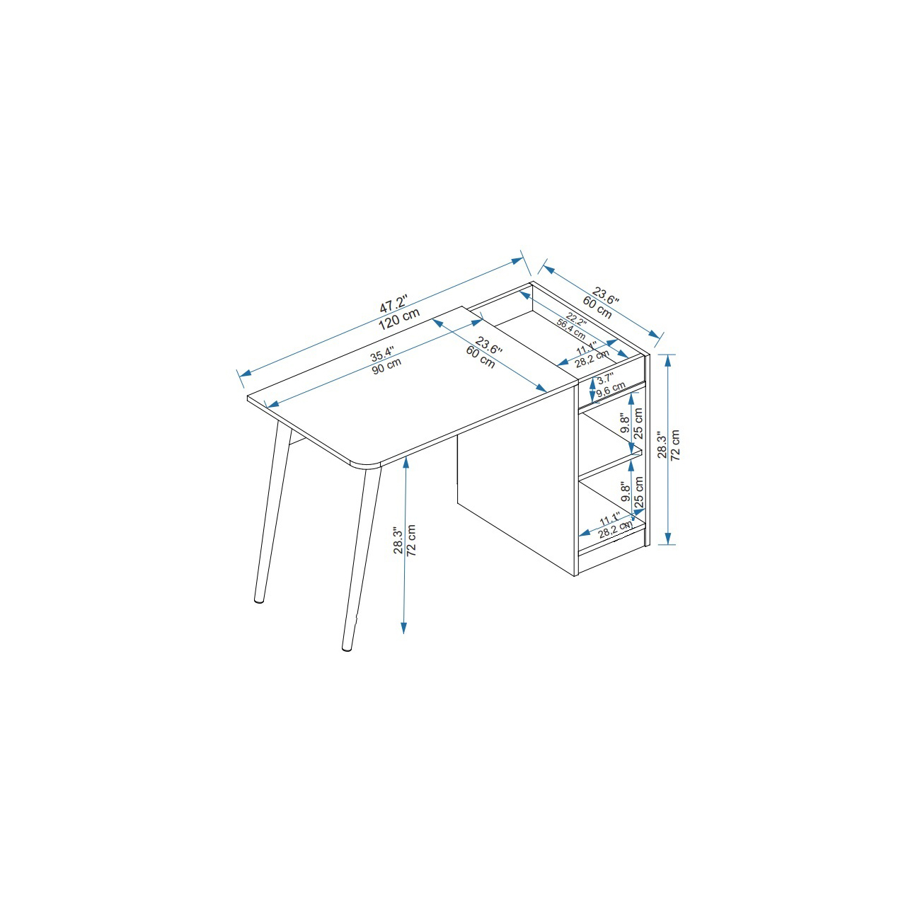 HEIGHT: 28,34" / 72 cm | WIDTH: 47,24" / 120 cm | DEPTH: 23.6" / 60 cm.