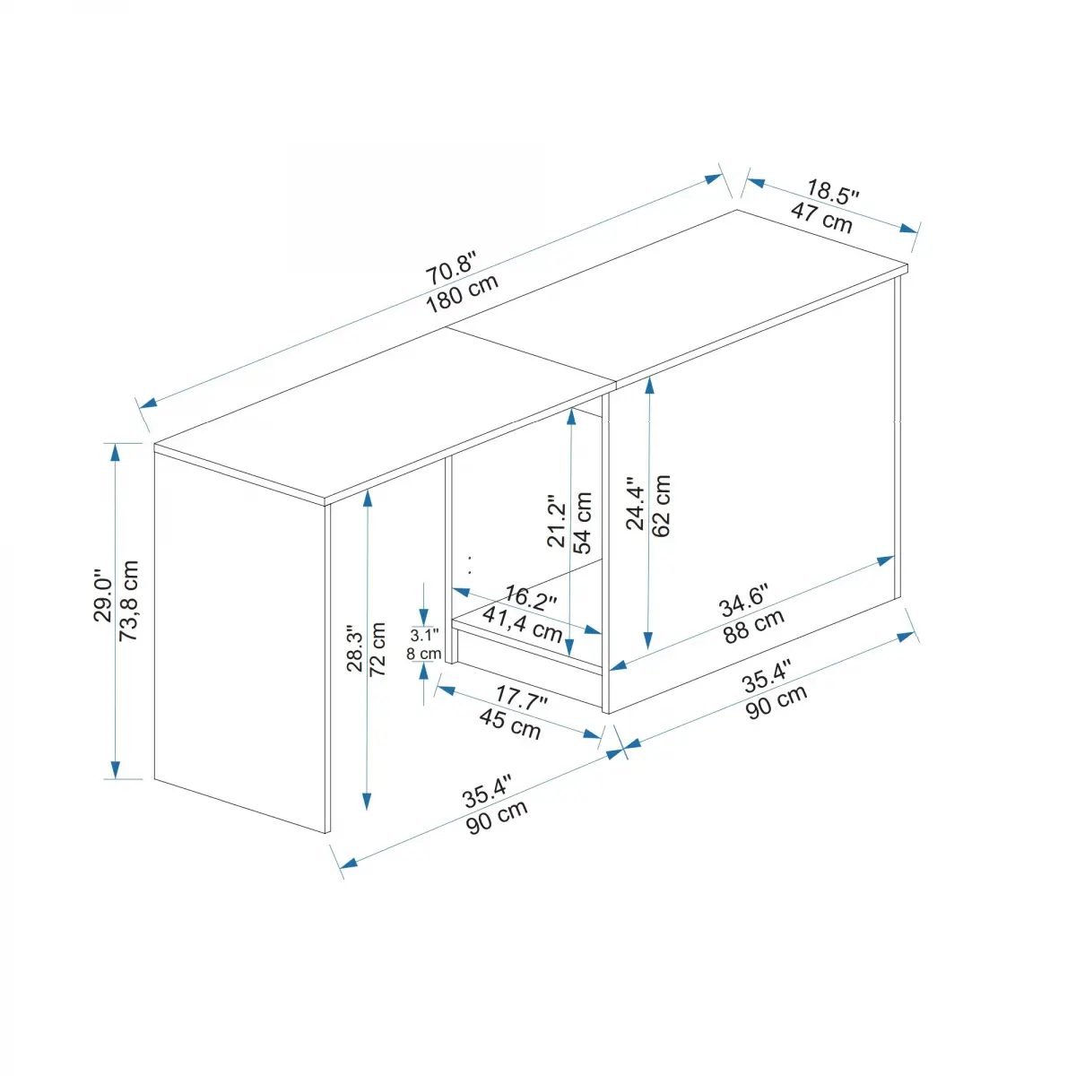 - Made of 18 mm thick particleboard