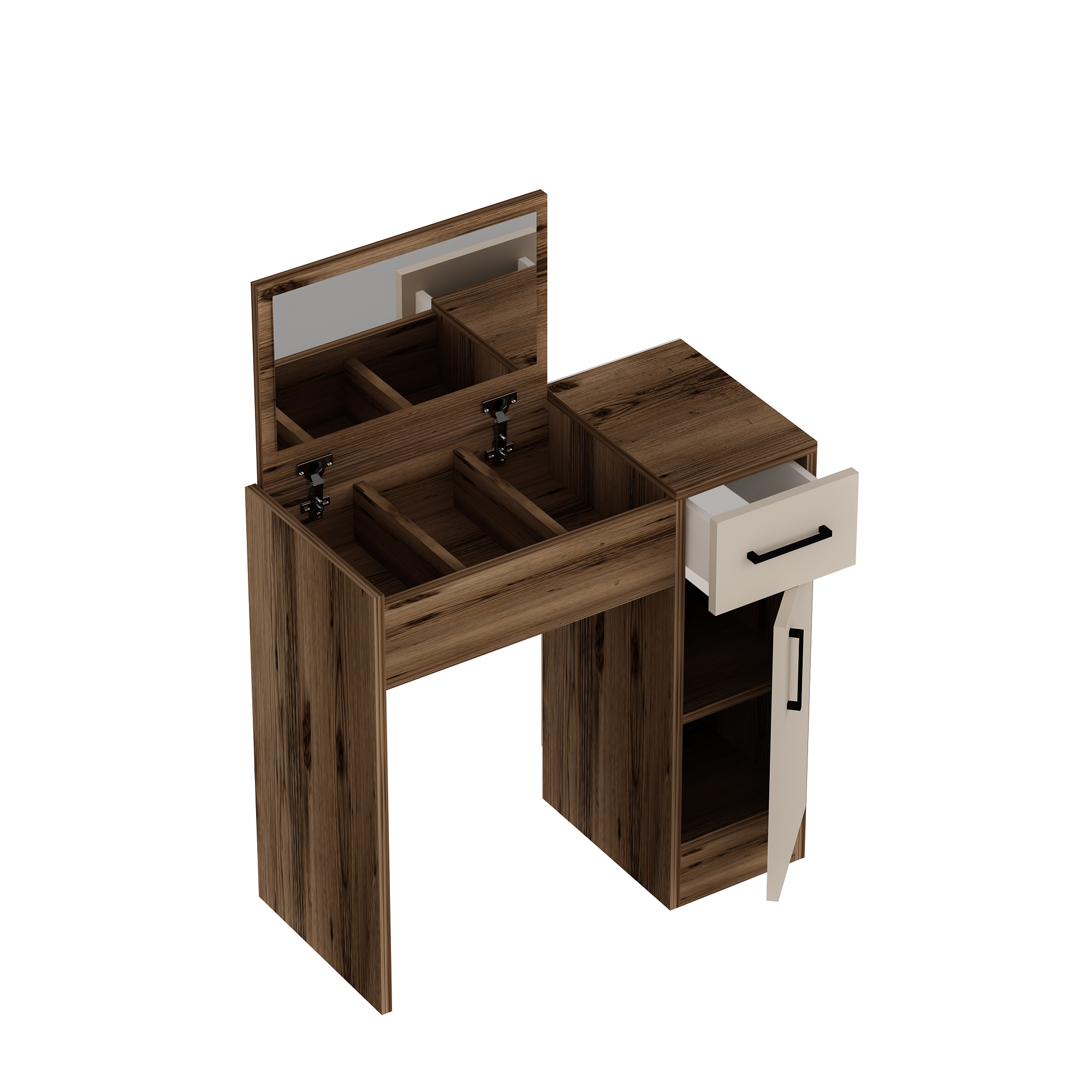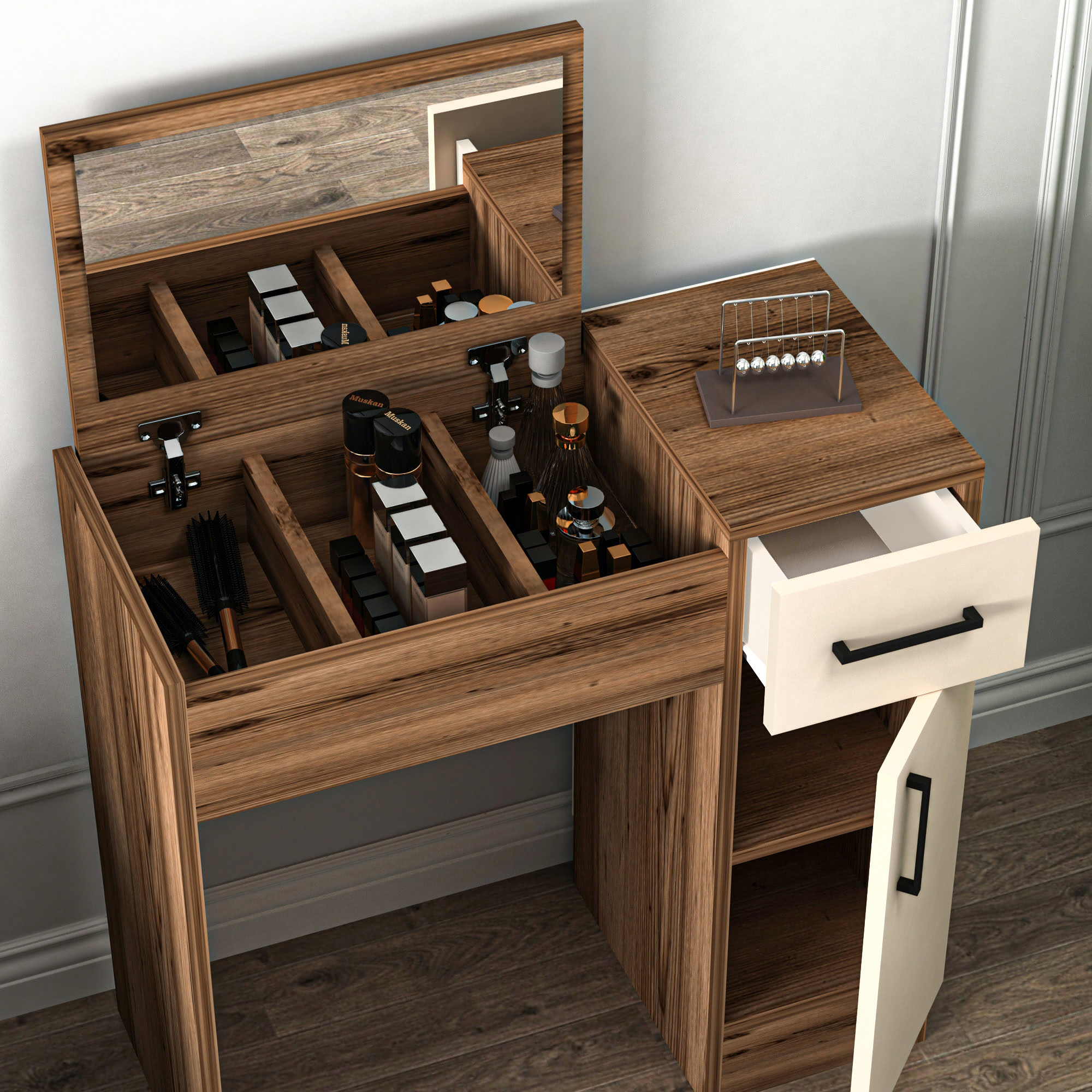 Agnes Makeup Vanity Table with Mirror - Light Walnut & Beige