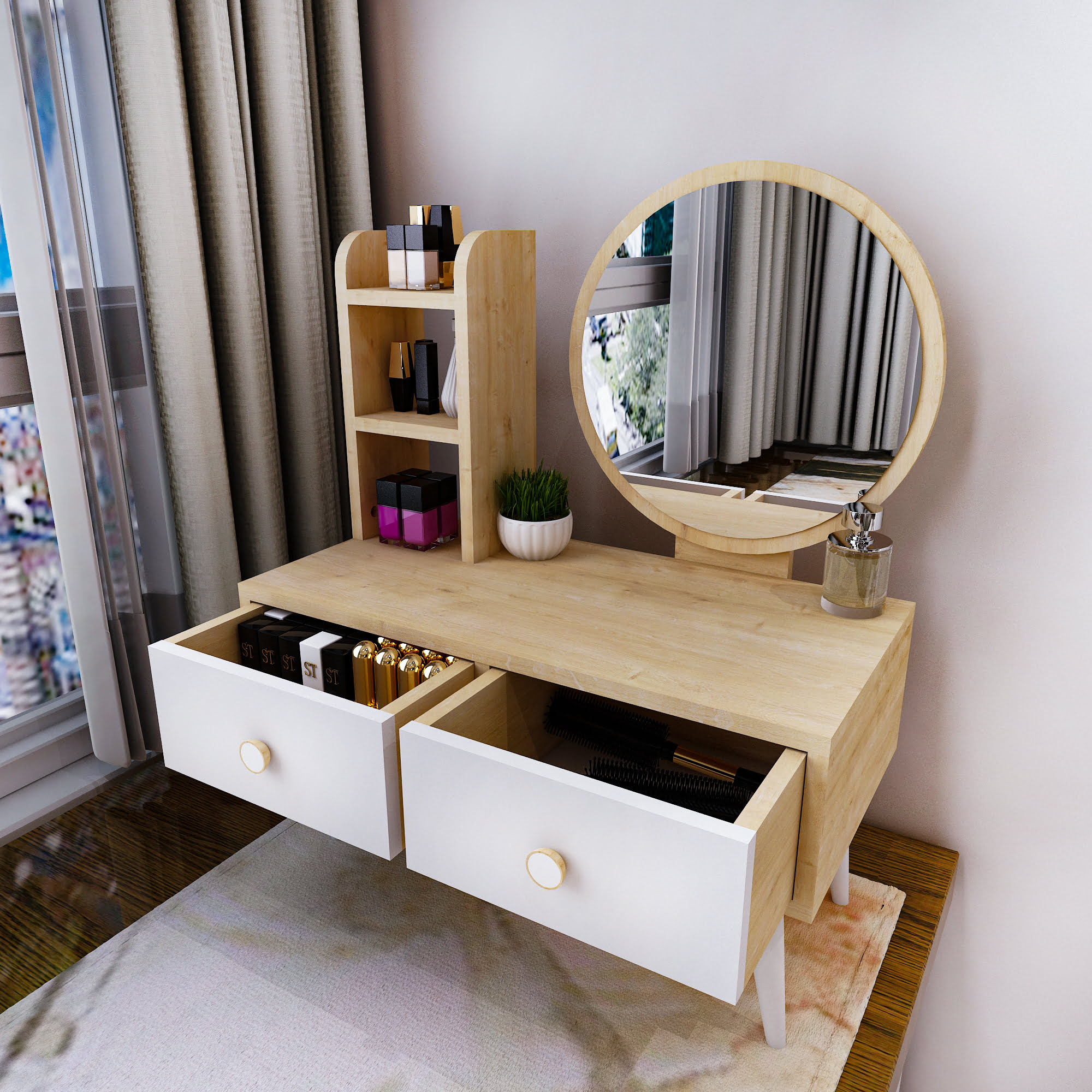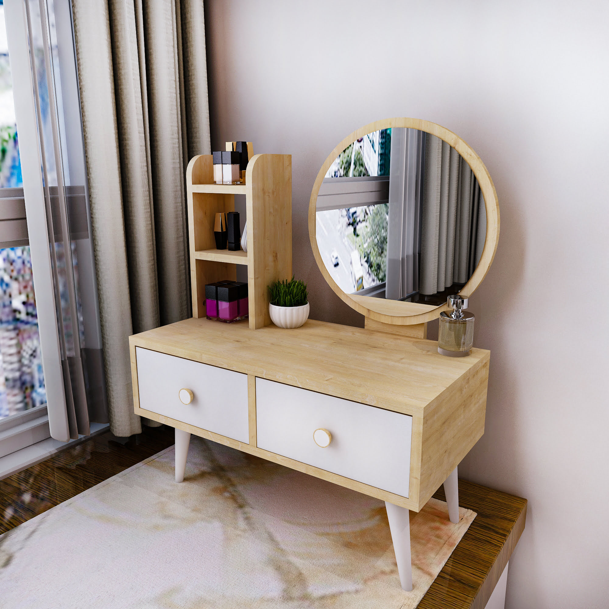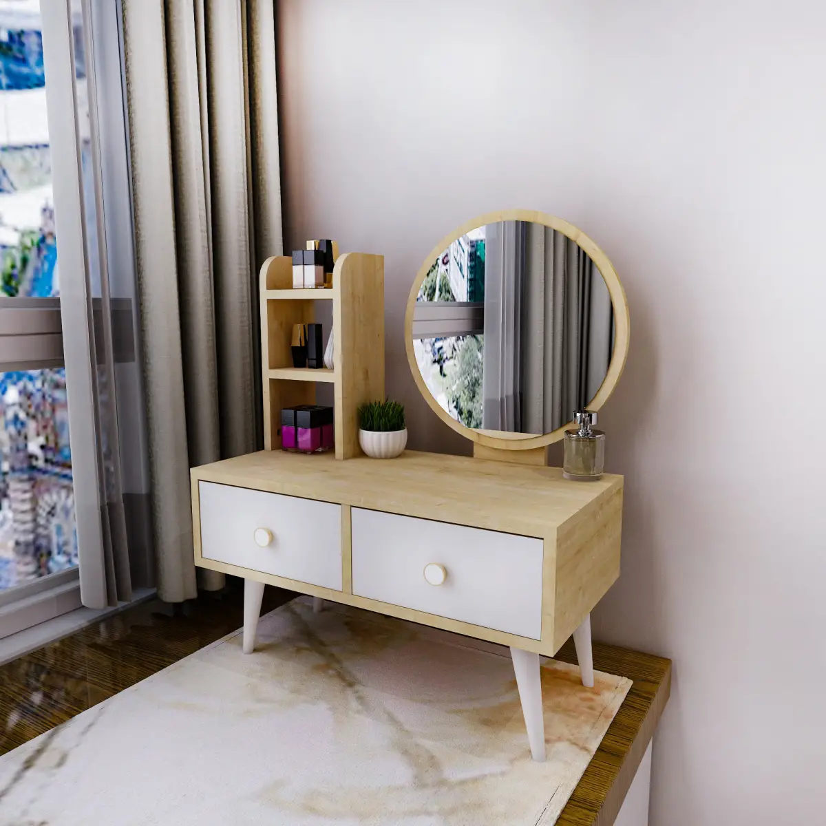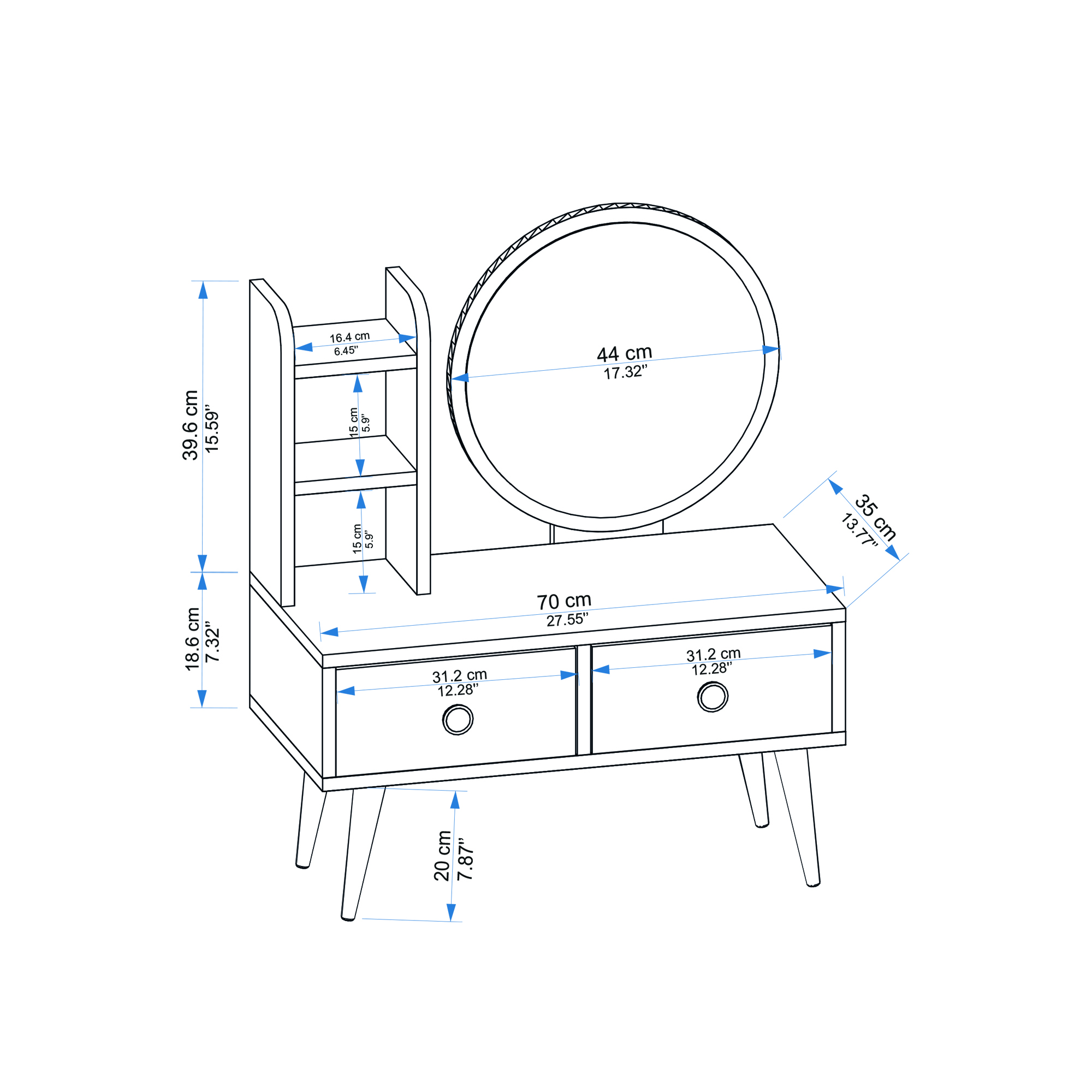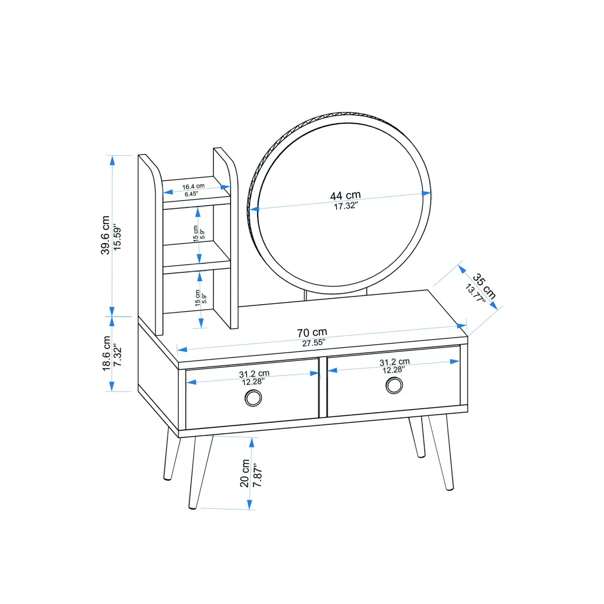 Cindy Makeup Vanity Table - White & Sapphire Oak