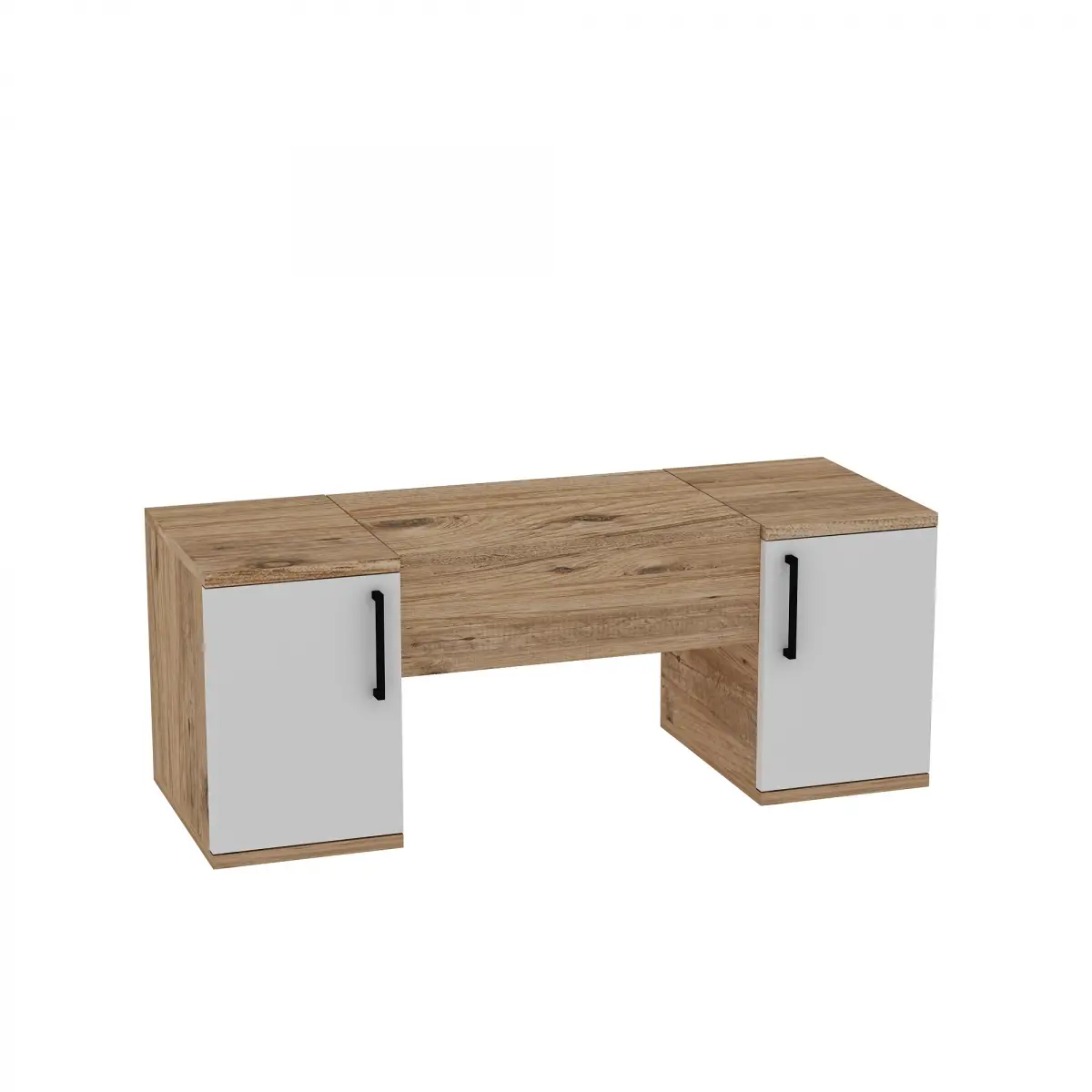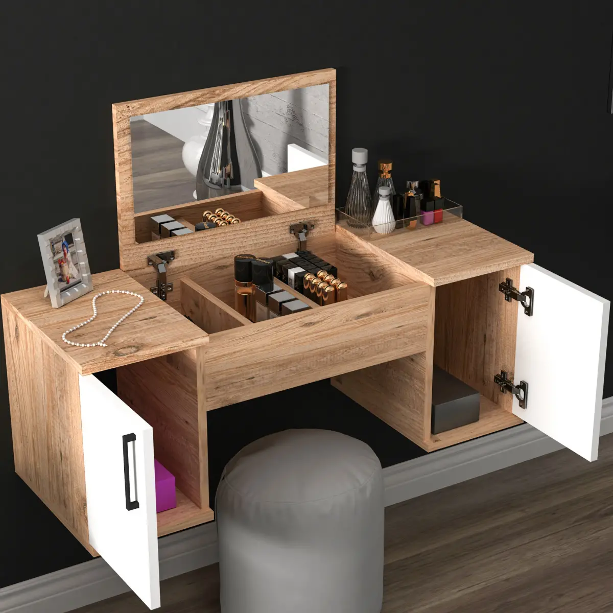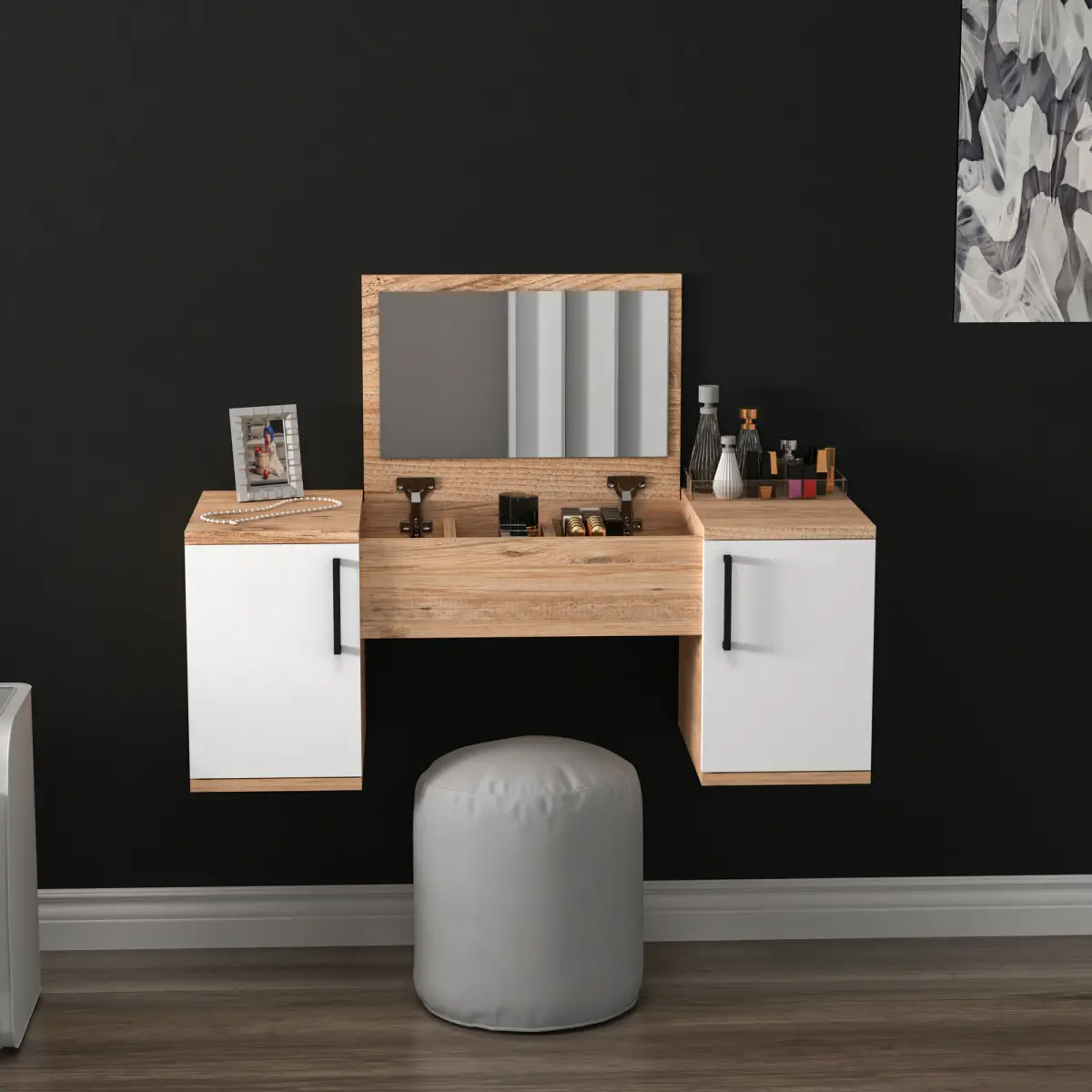 MATERIAL: The makeup table is made of an 18 mm thick high-quality melamine coated particleboard. The manufactured wood surface is water-resistant to some extent and edges are banded with PVC edge banding tape. Handles are quality iron metal. First-class assembly/installation hardware and accessories are used. Our products are produced from E1 certified raw materials that do not contain carcinogenic substances and comply with European Union health norms.
