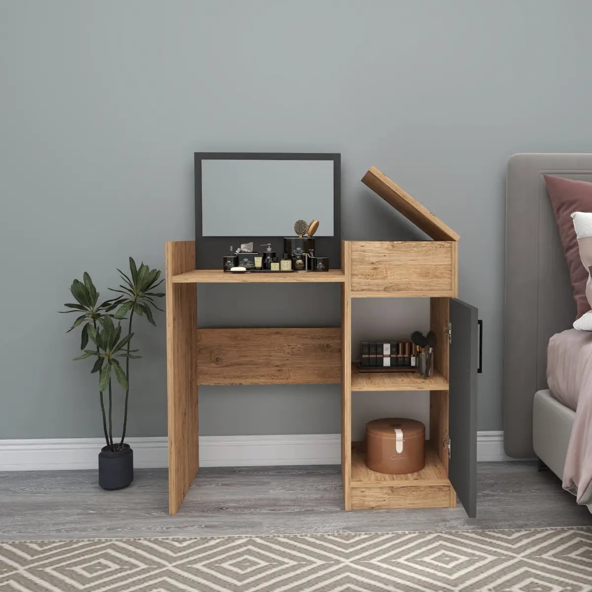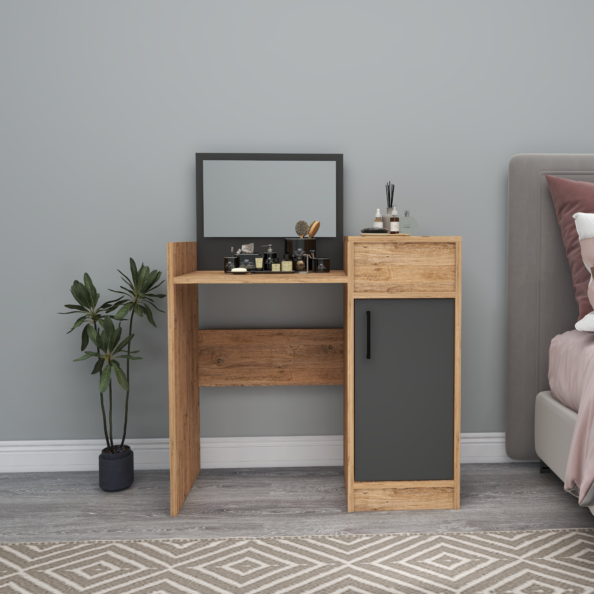 Sedef Makeup Vanity Table - Atlantic Pine & Anthracite
