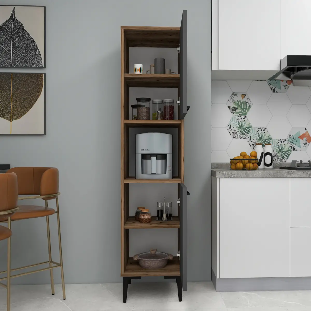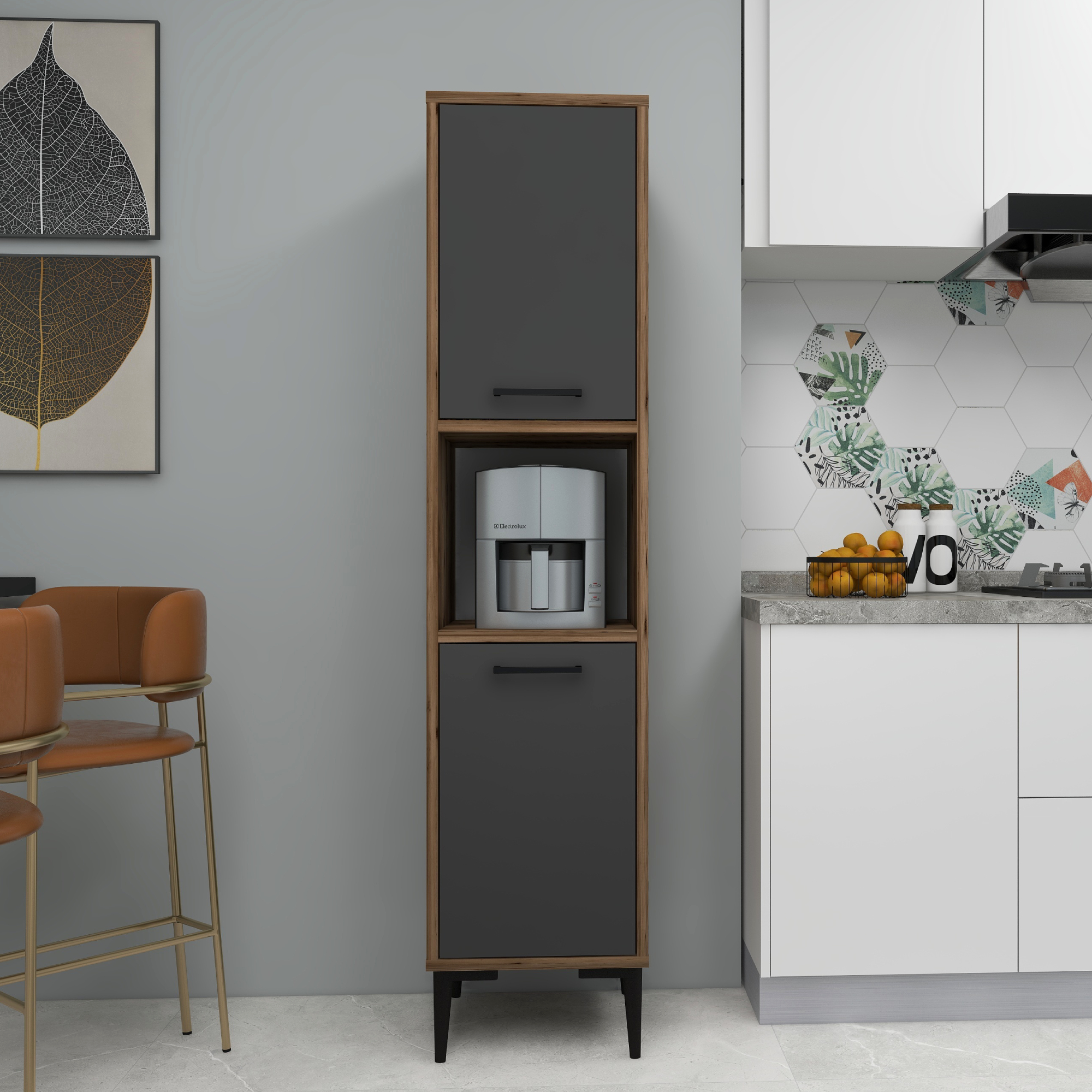 Dale Multi-Purpose Kitchen Cabinet - Light Walnut & Anthracite