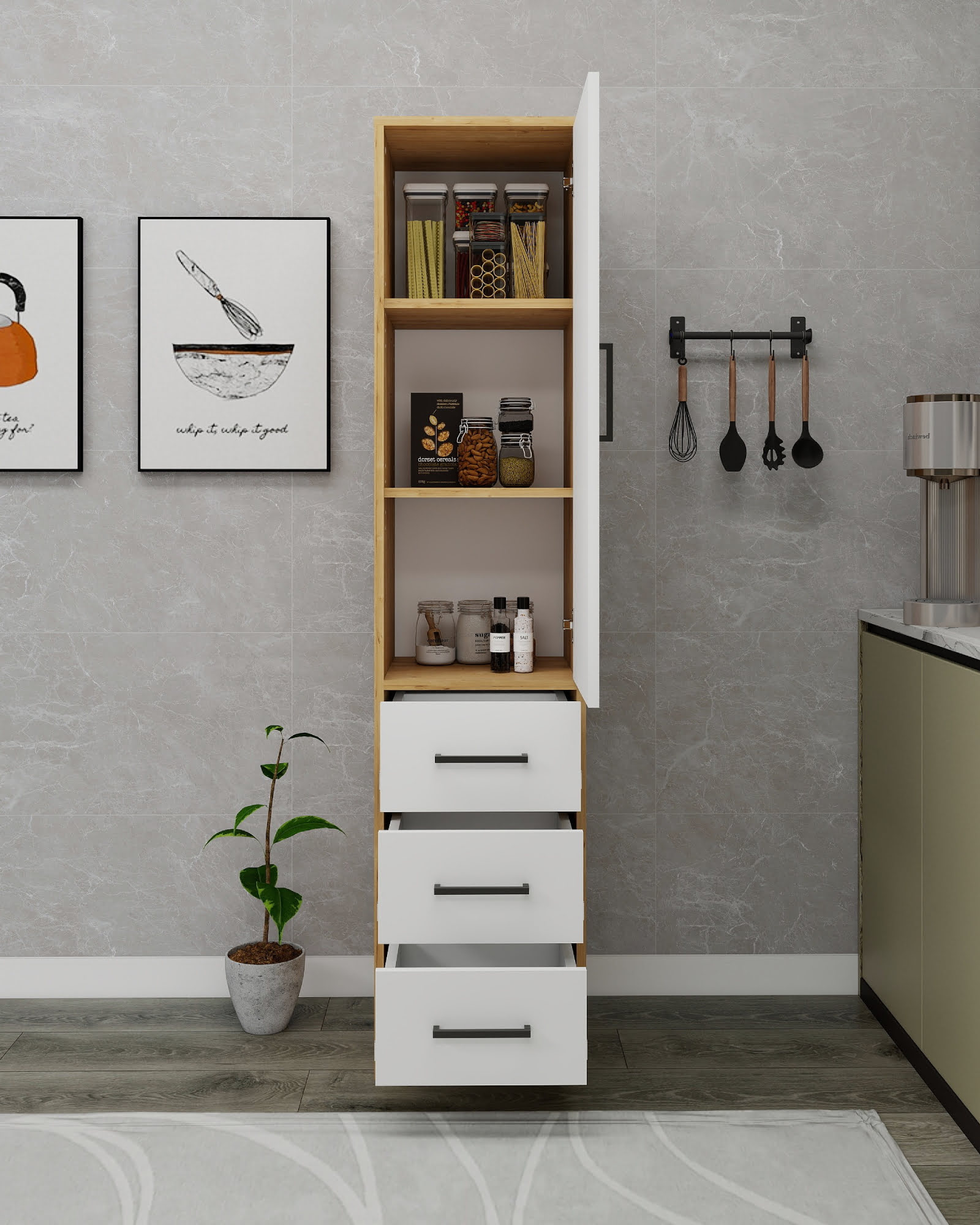 Modera Multi-Purpose Cabinet - Sapphire Oak & White