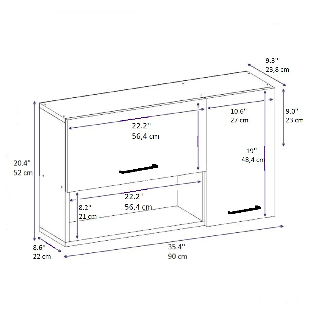 HEIGHT: 20.4" / 52 cm | WIDTH: 35.4" / 90 cm | DEPTH: 9.7" / 24.8 cm.