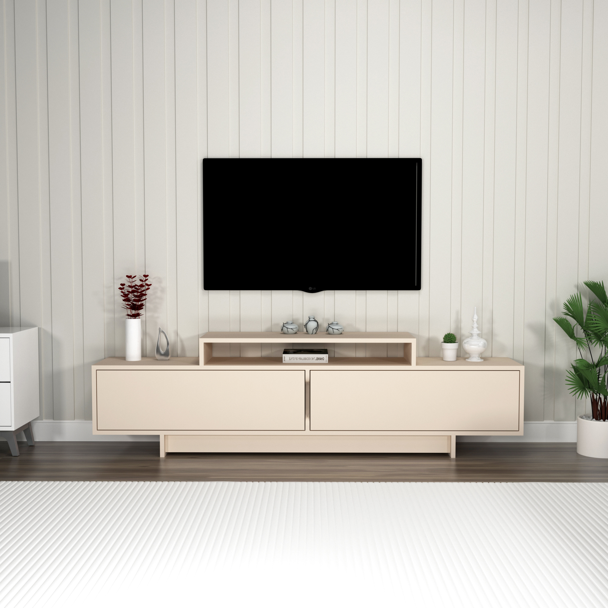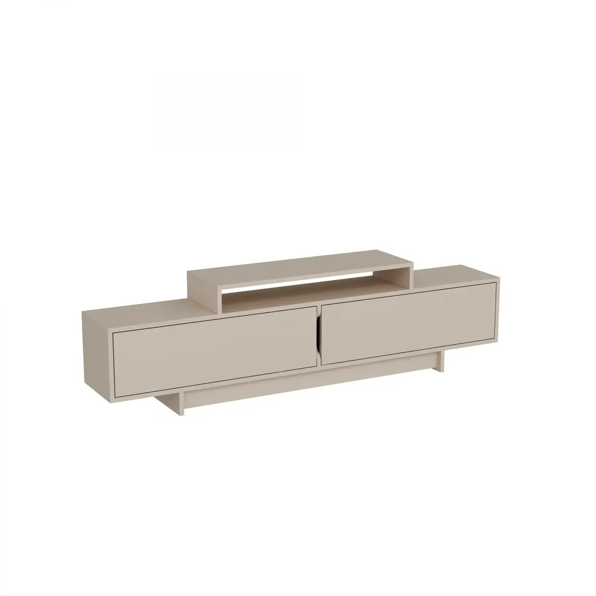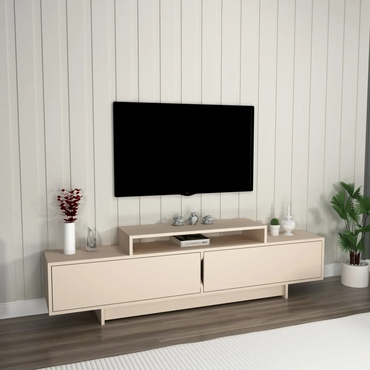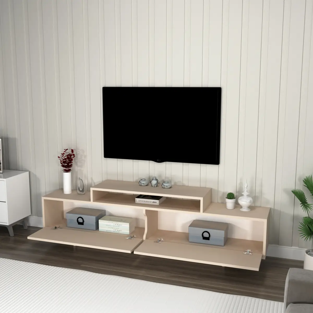 MATERIAL: The TV stand is made of an 18 mm thick high-quality melamine-coated particleboard. The manufactured wood surface is water-resistant to some extent and the edges are banded with PVC edge banding tape. First-class assembly/installation hardware and accessories are used. Our products are produced from certified quality raw materials that do not contain carcinogenic substances and comply with European Union health norms.