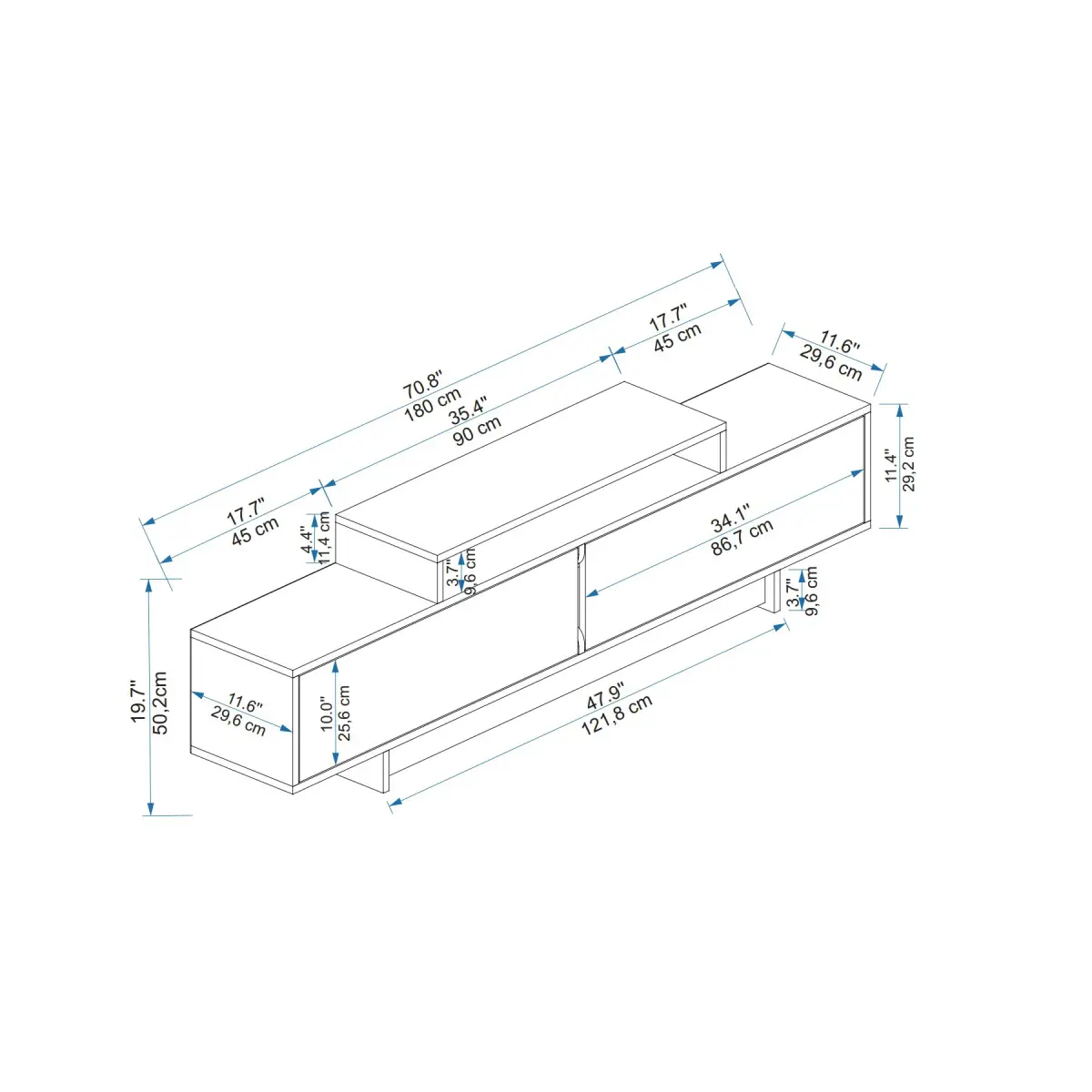 HEIGHT: 19,76 / 50.2 cm | WIDTH: 70,86" / 180 cm | DEPTH: 11.6" / 29.6 cm.