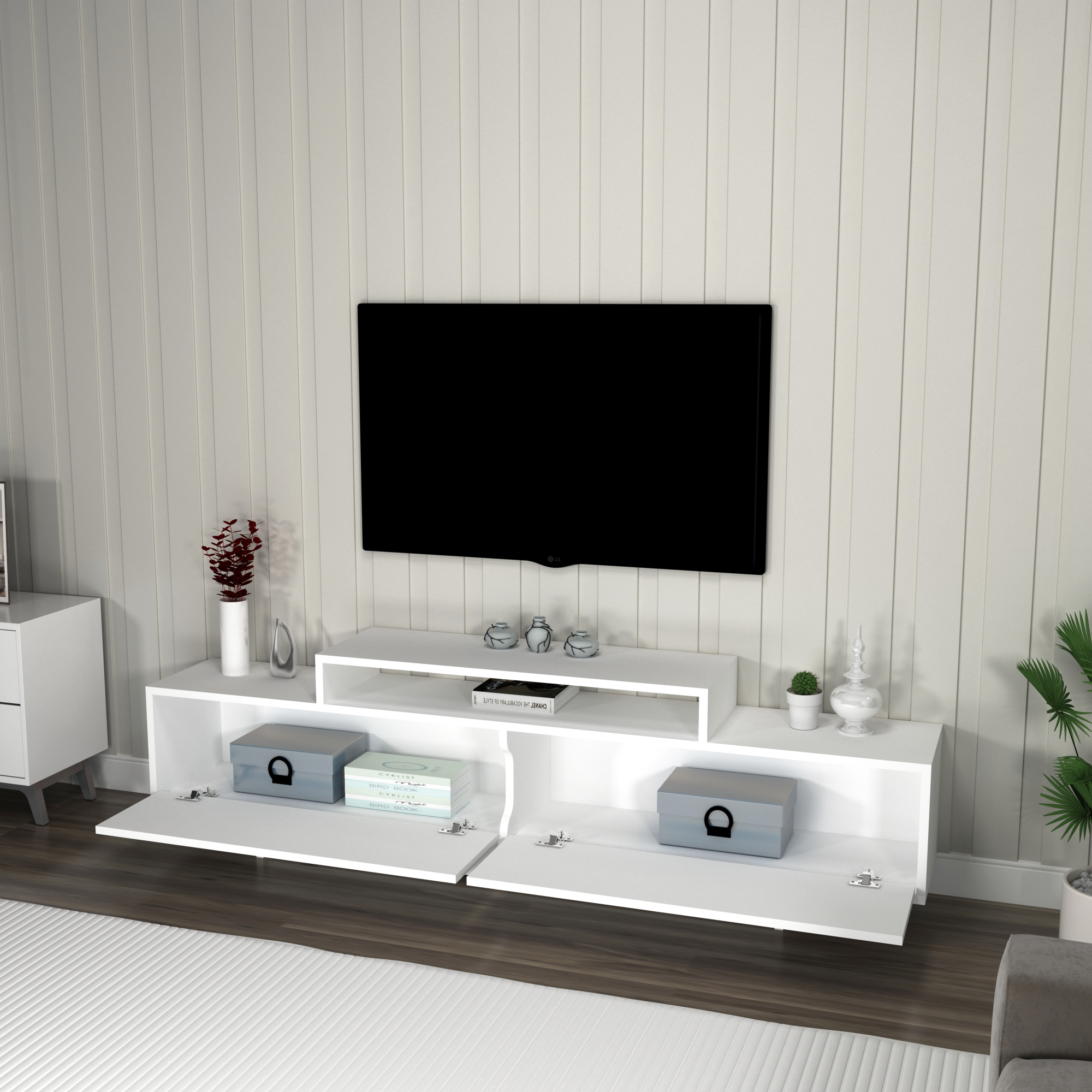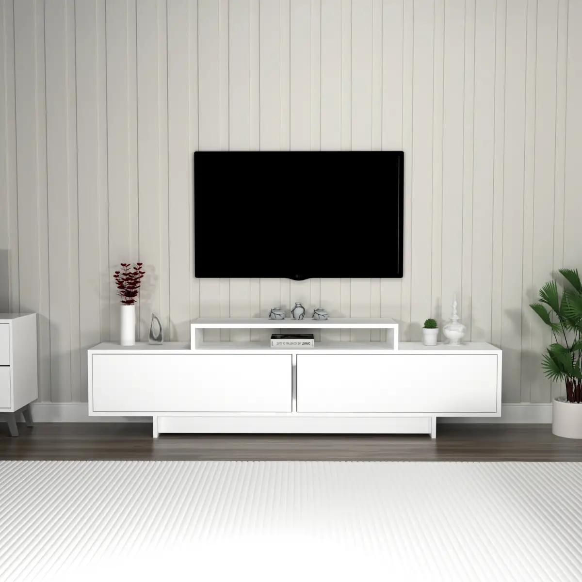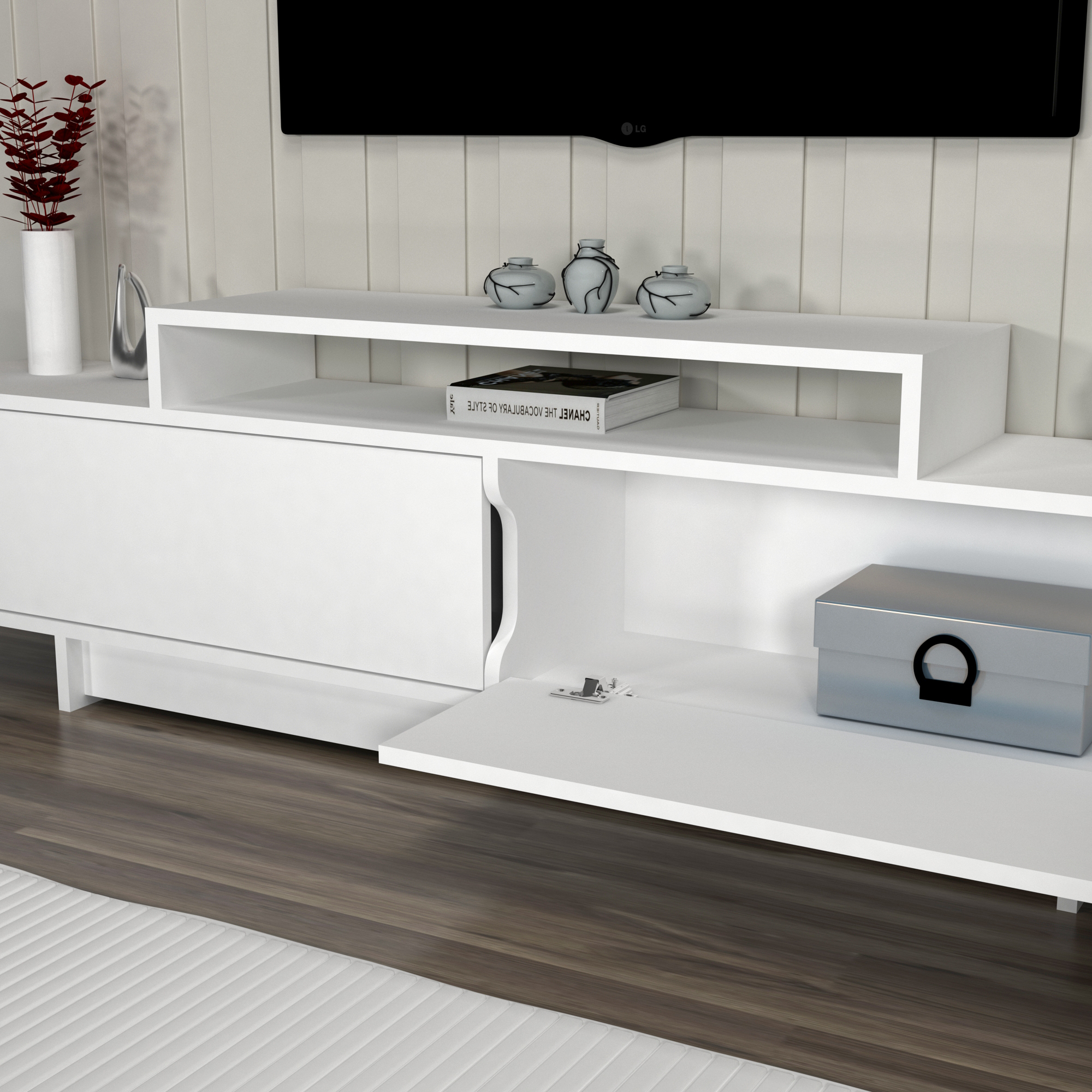 MATERIAL: The TV stand is made of an 18 mm thick high-quality melamine-coated particleboard. The manufactured wood surface is water-resistant to some extent and the edges are banded with PVC edge banding tape. First-class assembly/installation hardware and accessories are used. Our products are produced from certified quality raw materials that do not contain carcinogenic substances and comply with European Union health norms.