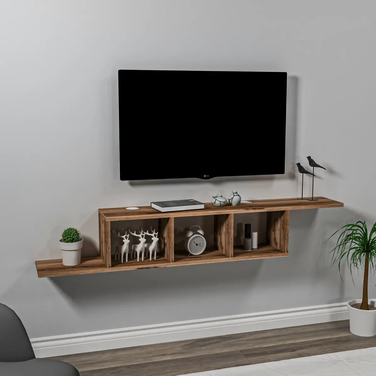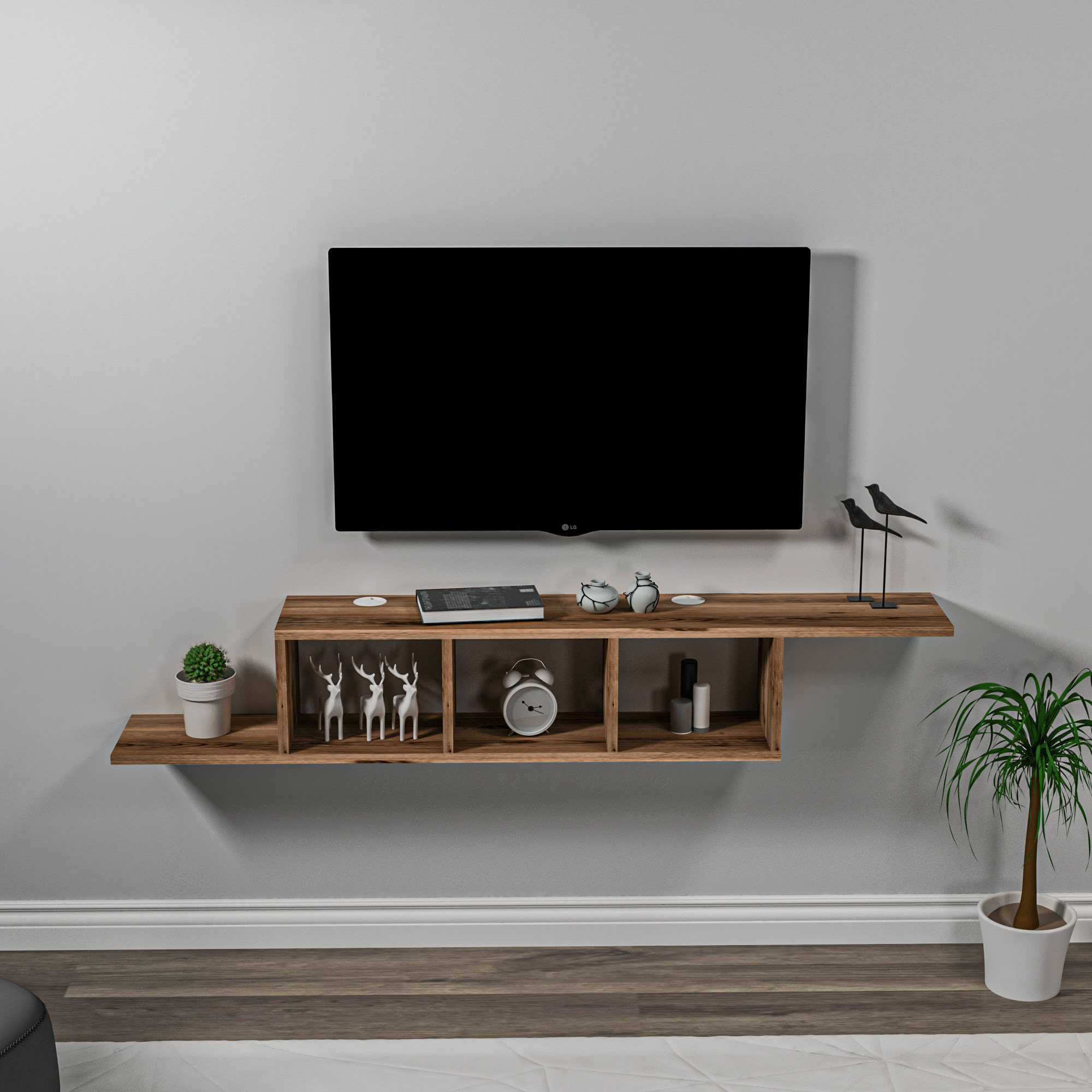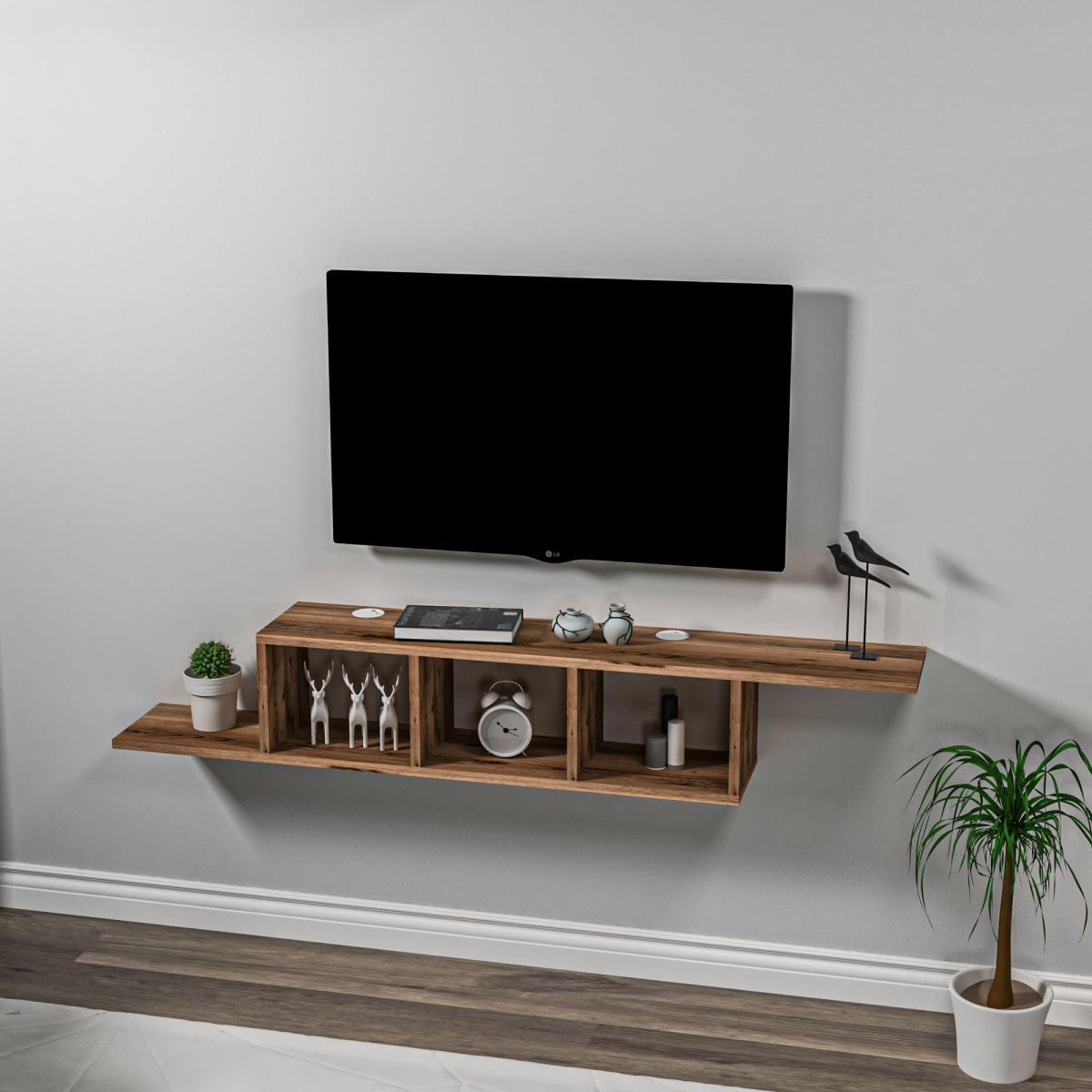 Note that the TV stand is not designed to hold a TV, instead both the stand and the TV must be mounted to the wall separately.