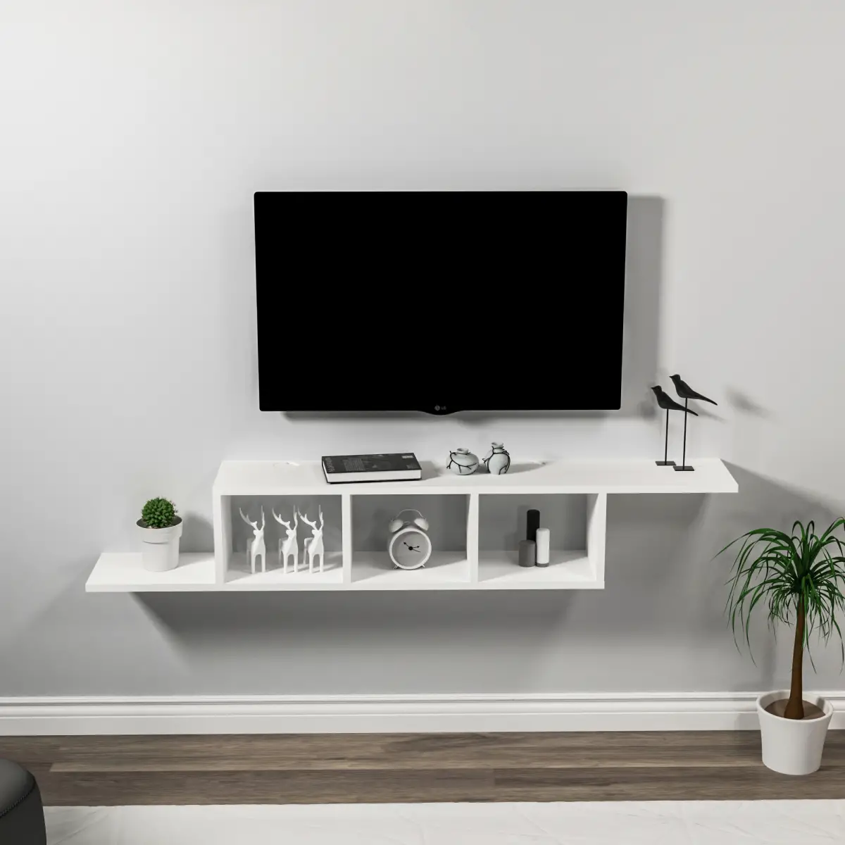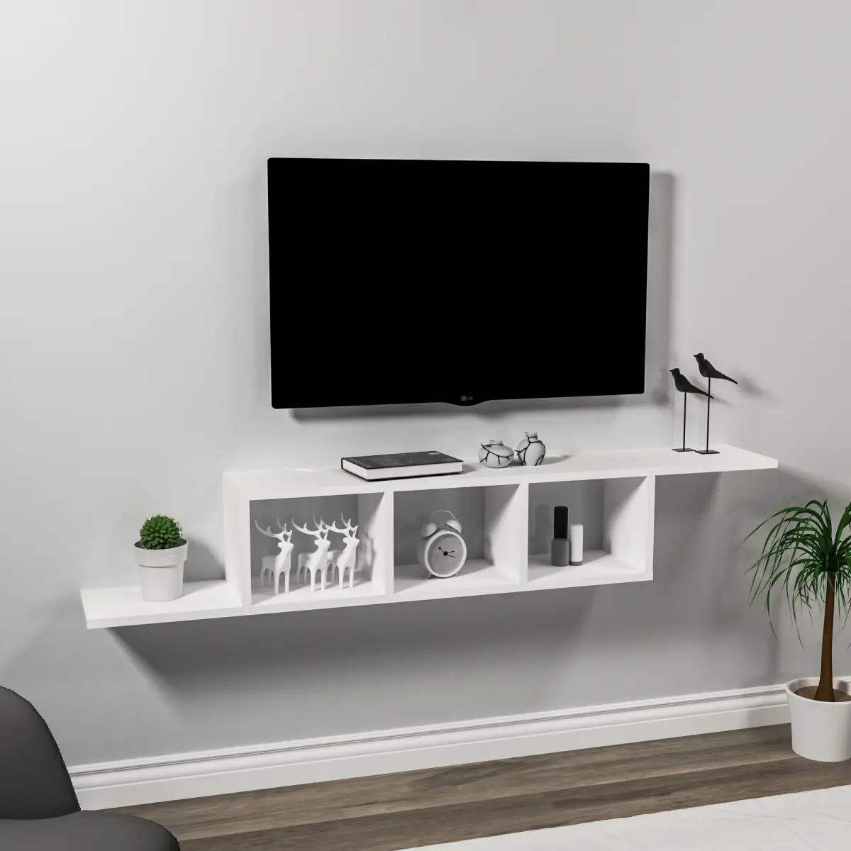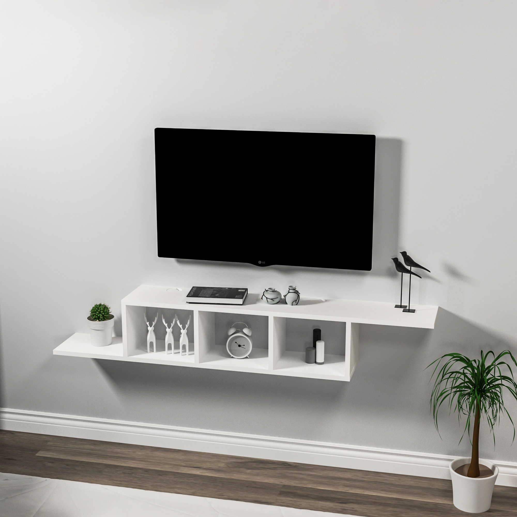 Note that the TV stand is not designed to hold a TV, instead both the stand and the TV must be mounted to the wall separately.