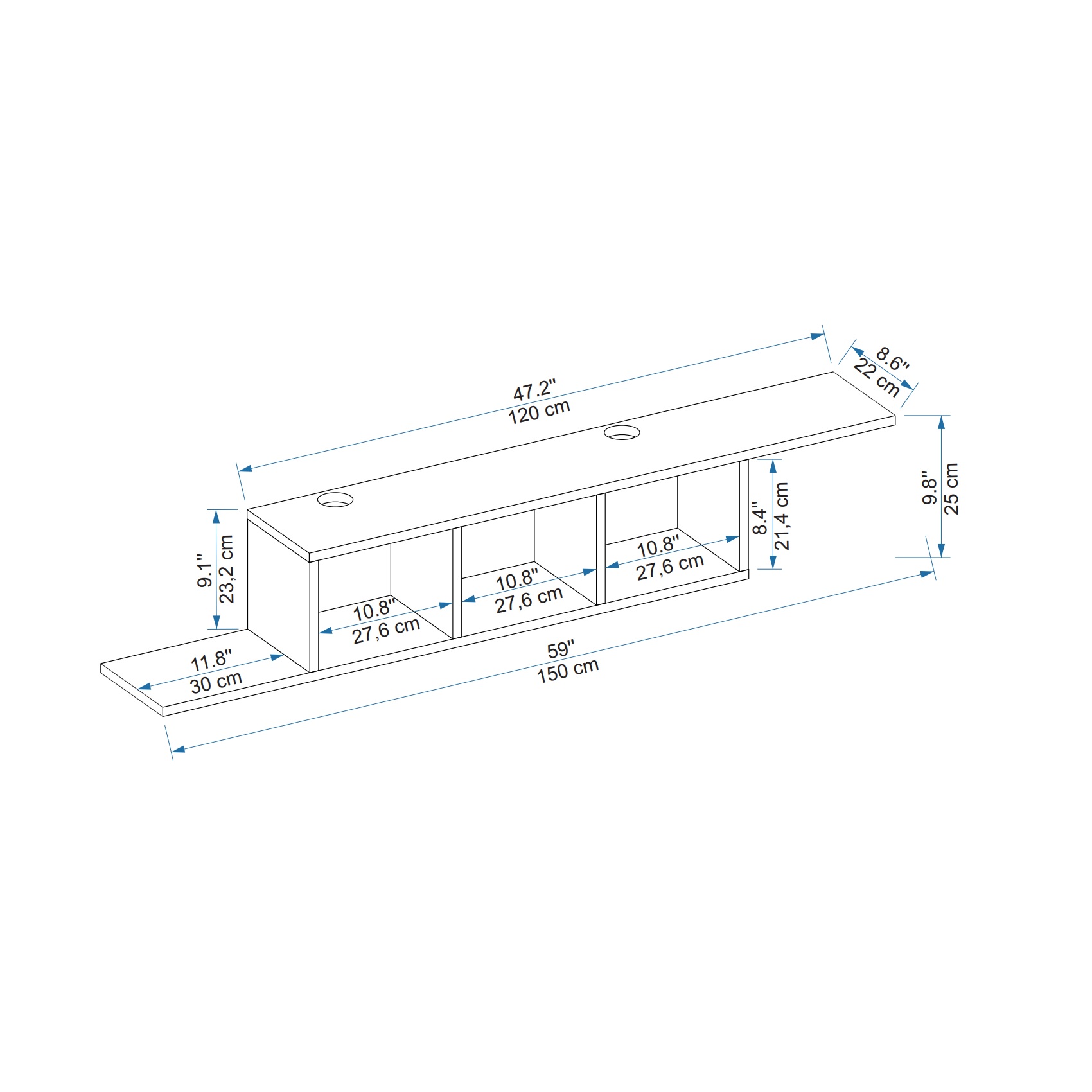 HEIGHT: 9.8" / 25 cm | WIDTH: 59" / 150 cm | DEPTH: 8.6" / 22 cm.