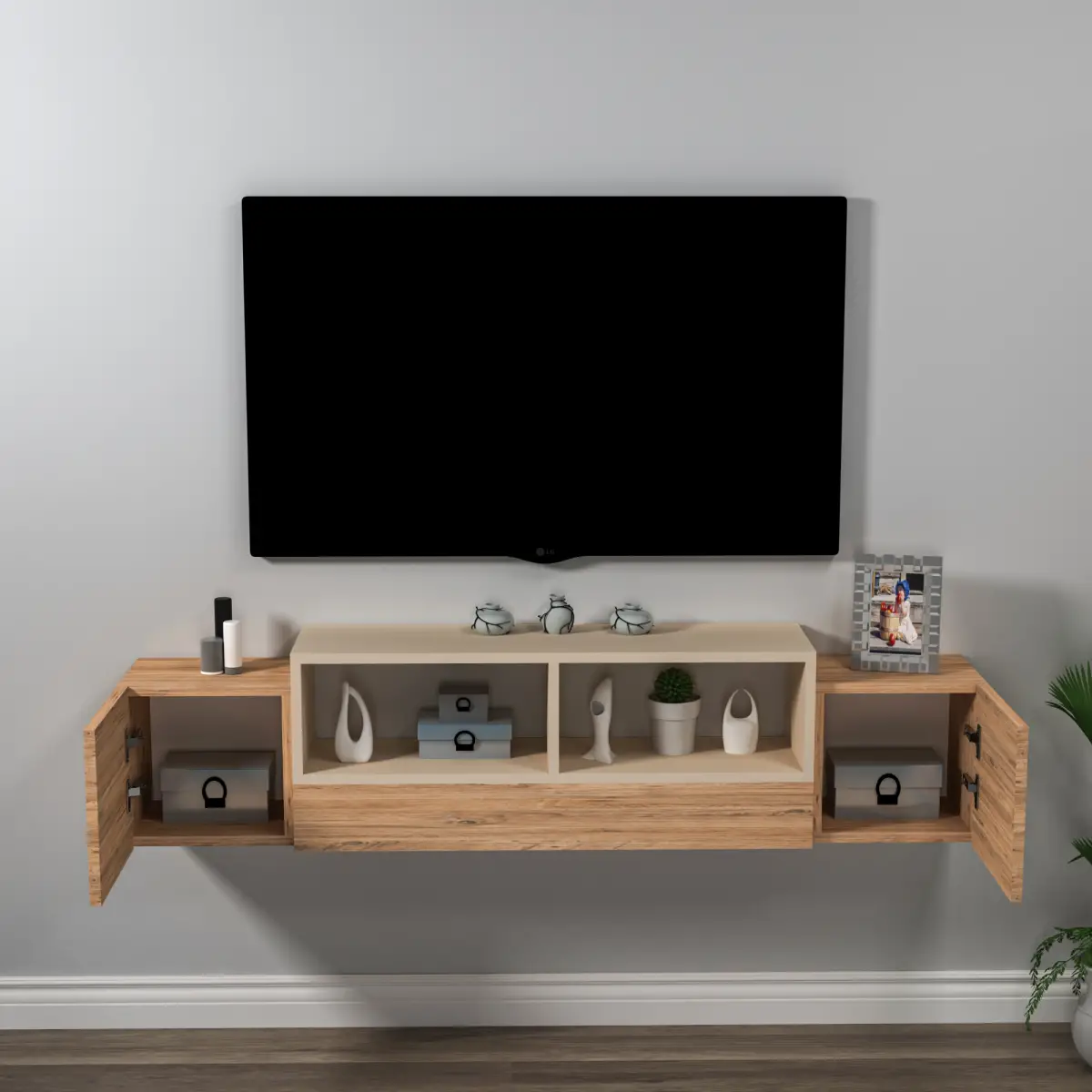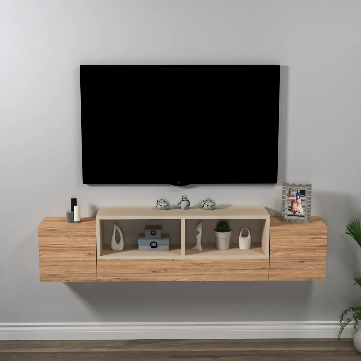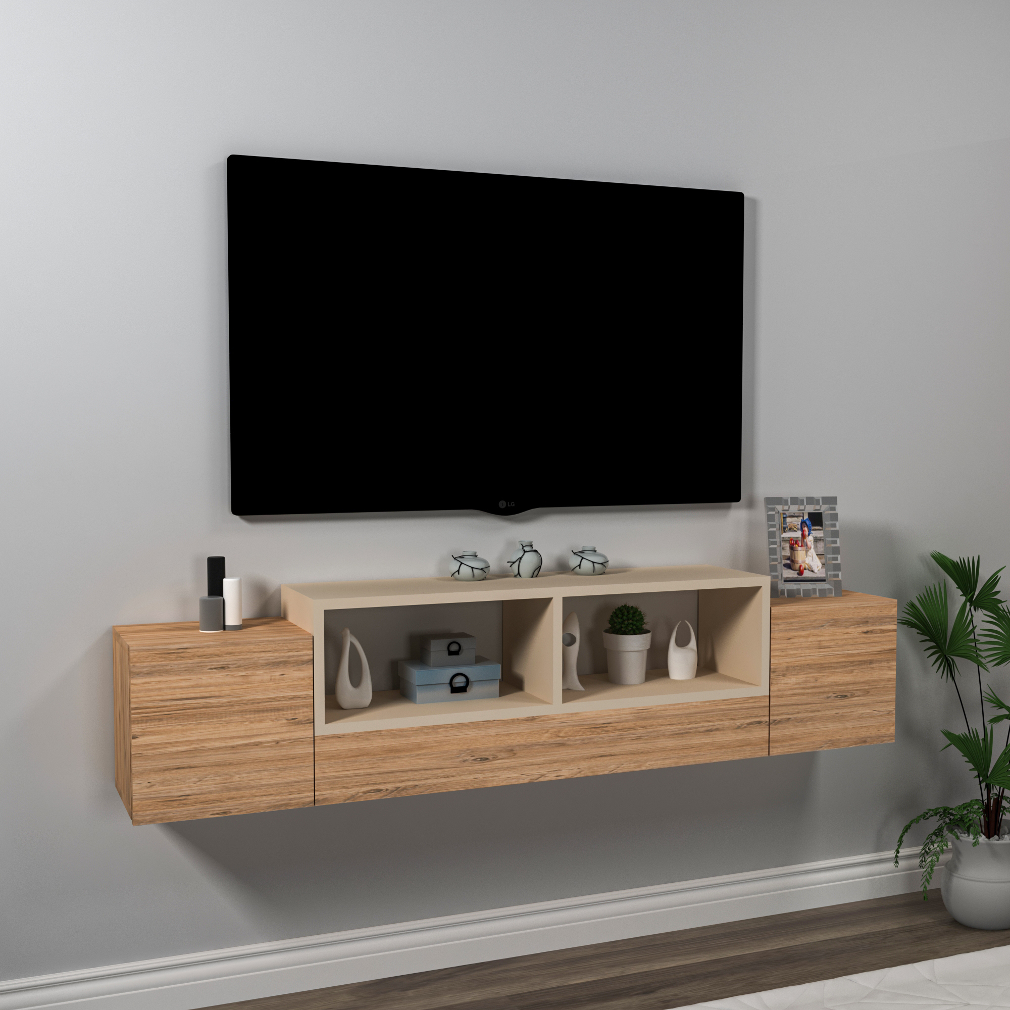 Morica Floating TV Stand - Atlantic Pine & Beige