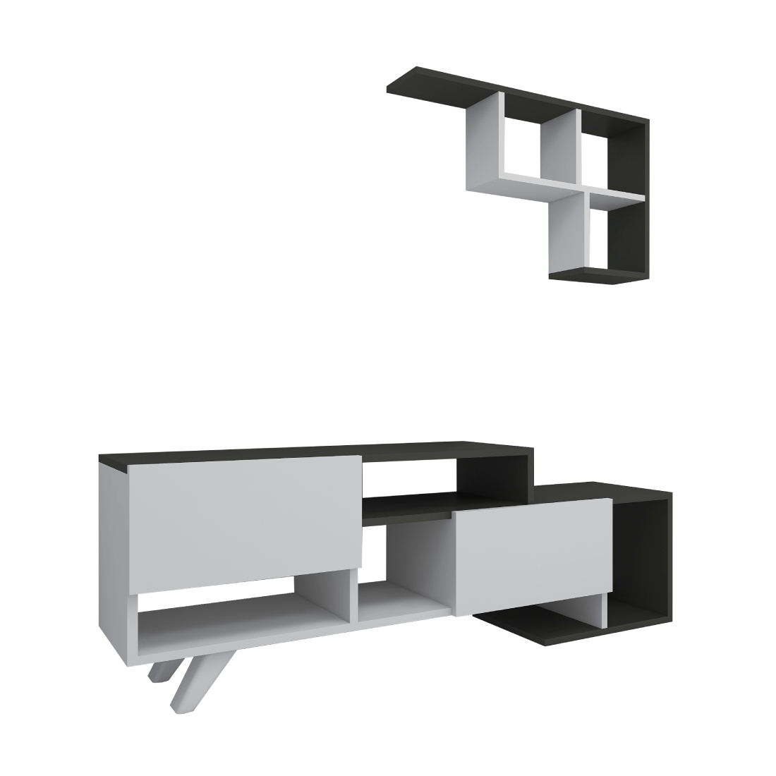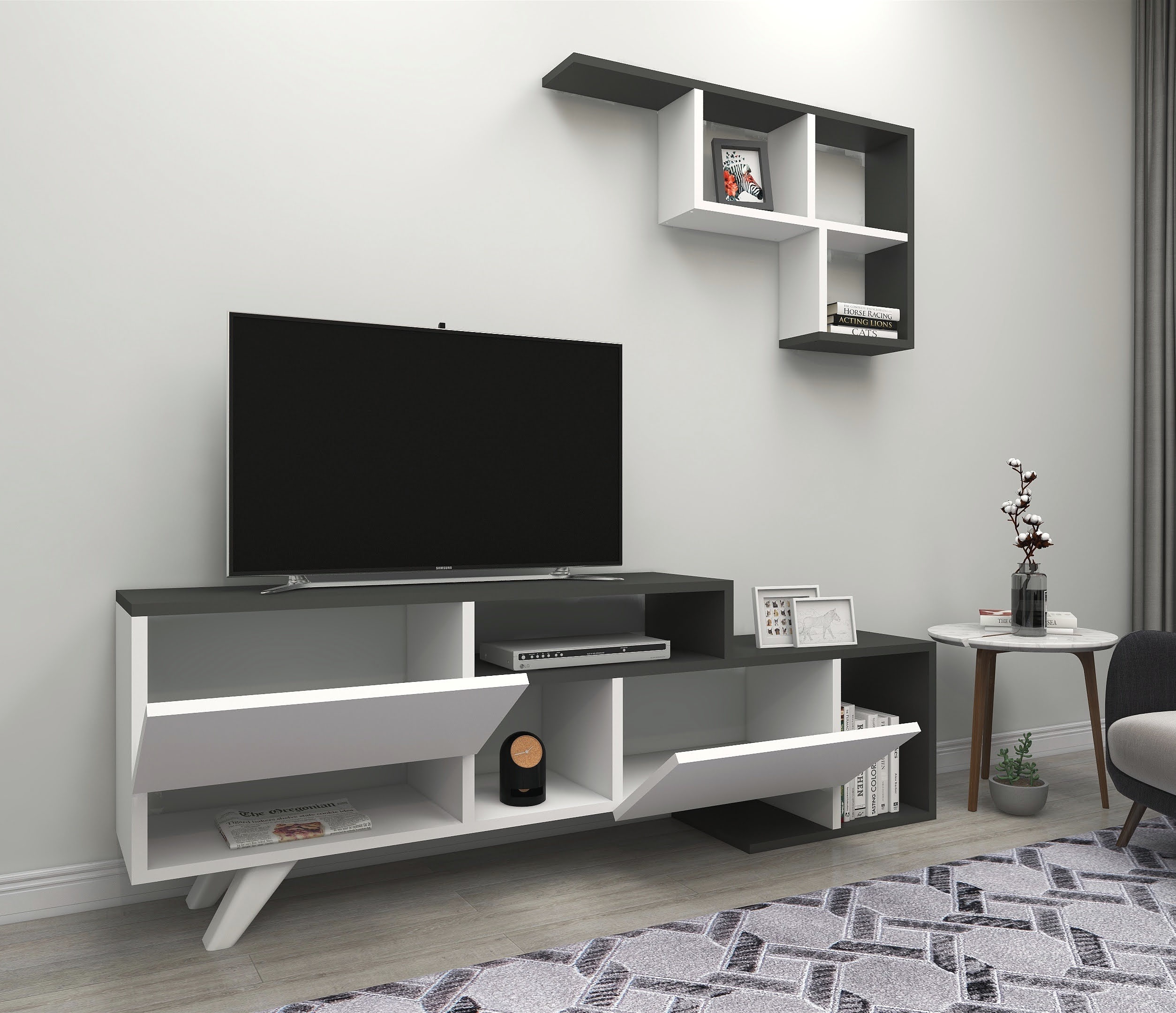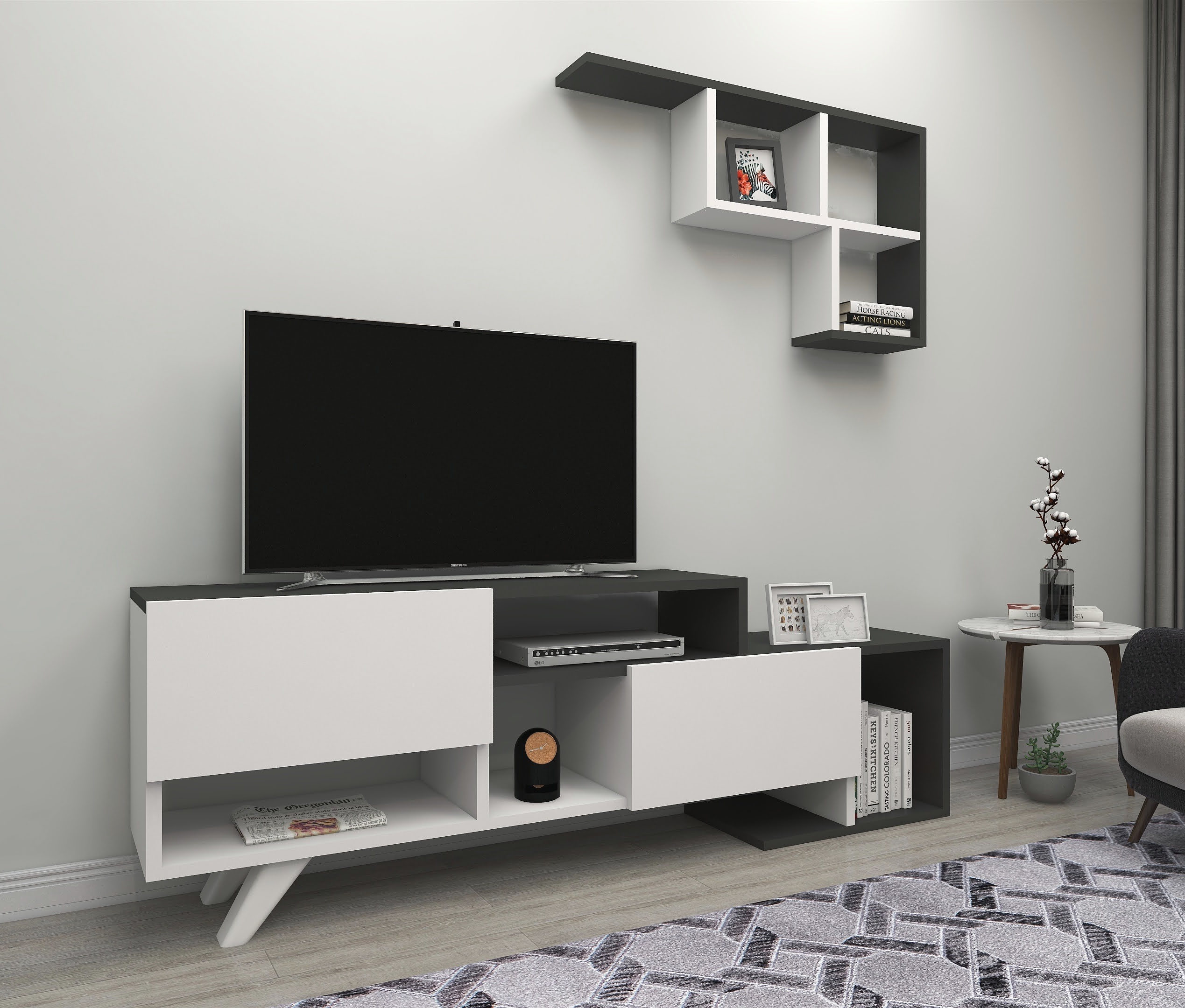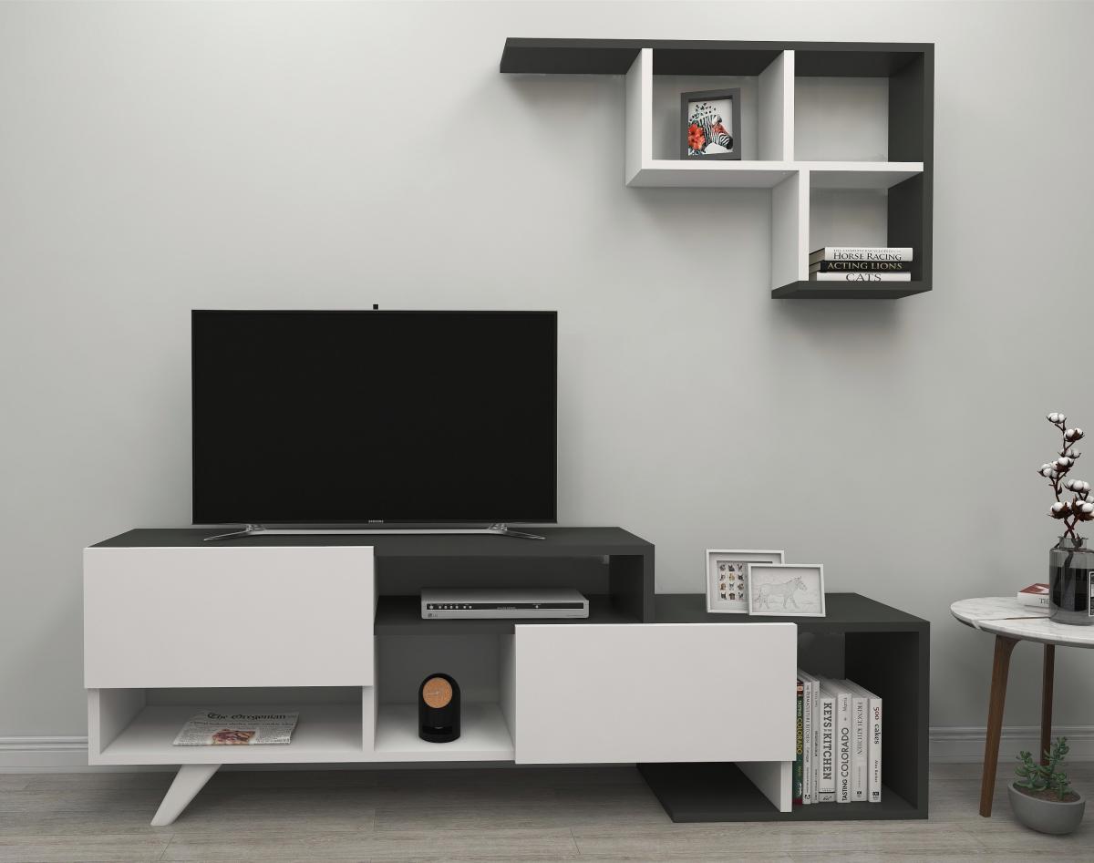 Pilmin TV Stand and Entertainment Center - White & Anthracite