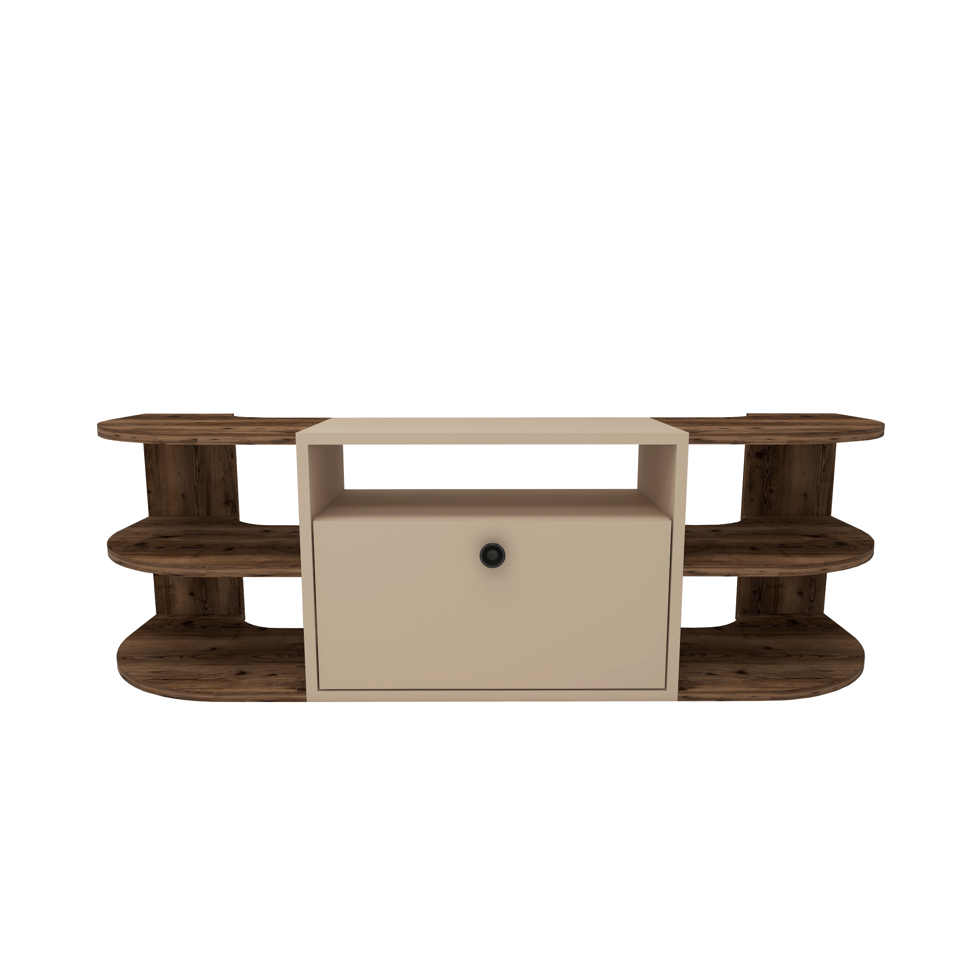 MATERIAL: The TV stand is made of an 18 mm thick high-quality melamine-coated particleboard. The manufactured wood surface is water-resistant to some extent and the edges are banded with PVC edge banding tape. First-class assembly/installation hardware and accessories are used. Our products are produced from certified quality raw materials that do not contain carcinogenic substances and comply with European Union health norms.